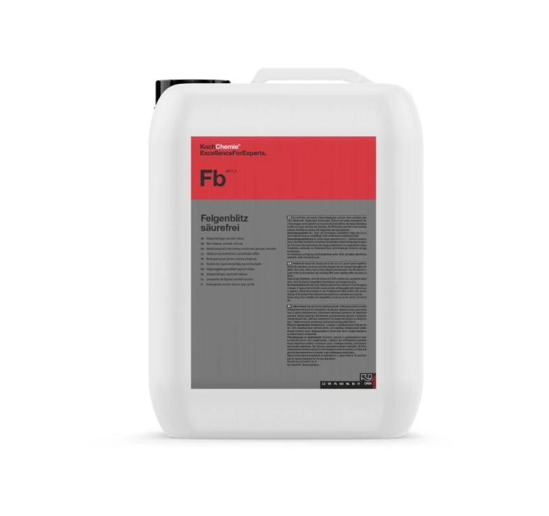 Koch Chemie Felgenblitz Säurefrei е високоефективен, pH неутрален гел-почистващ препарат за джанти, специално разработен за безопасно и ефективно отстраняване на втвърден спирачен прах, летен прах, ръжда и други неорганични замърсявания от лакирани и хромирани джанти.