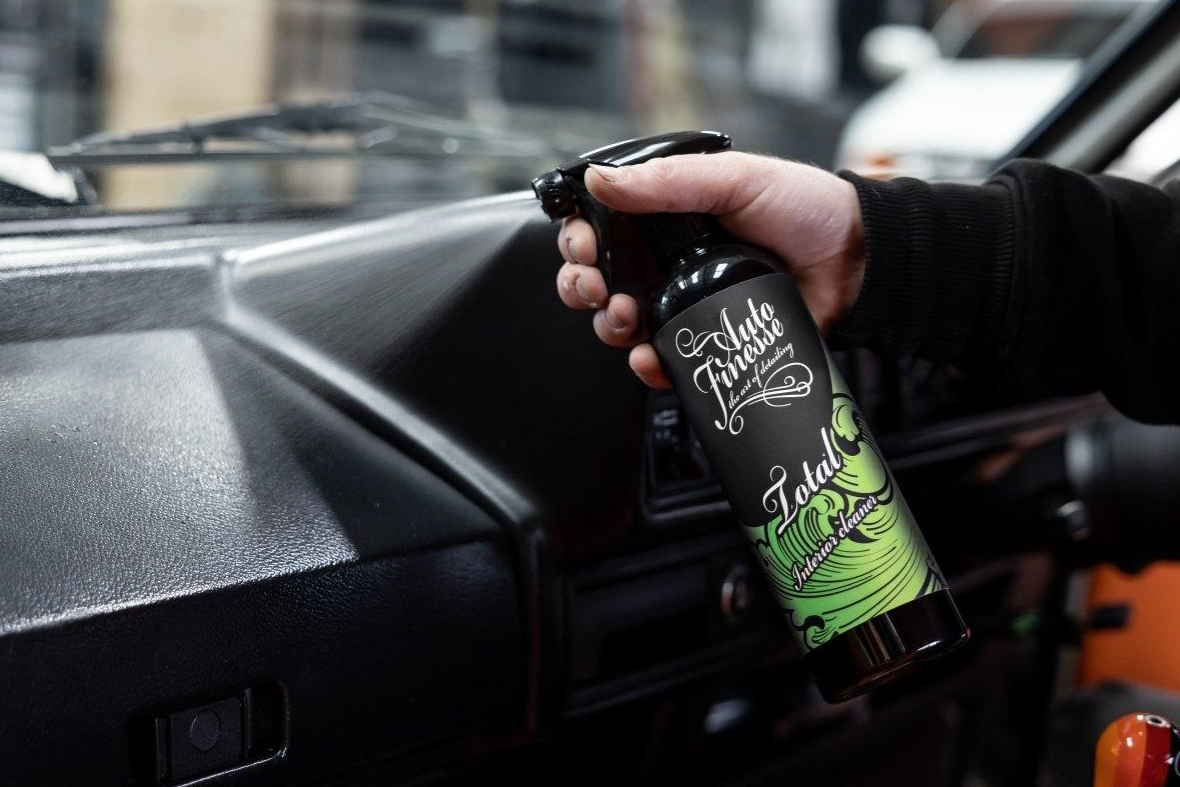 Auto Finesse Total Interior Cleaner е високоефективен универсален почистващ препарат за интериор. Това е специален препарат, създаден да отговори на вашите високи изисквания, независимо дали почиствате пластмаса, винил, каучук, текстил или килим. Total е добре обмислен и слабо пенящ препарат с активни съставки, които никога няма да ви разочароват. Той предлага балансирана комбинация от щадене и почистваща сила. Total съдържа и оптически избистрящи съставки и кондициониращи добавки. Това позволява почистване и освежаване дори на най-фините и деликатни части от интериора. Поради факта, че Total лесно се справя с широк спектър органични и неорганични замърсявания, той е подходящ както за цялостна грижа за повърхностите на автомобилите, така и за поддръжка на исторически автомобили, където се цени оригиналното състояние. Total е ефективен при почистване на петна от пот, масла, кафе, трева, кал, кремове, храни и дори кръв. Auto Finesse Total е разработен въз основа на дългогодишен опит и подробни тестове. Неговата лесна употреба и висока производителност ви позволяват да почиствате интериора с увереност, че ще постигнете наистина първокласни резултати. Както всички продукти Auto Finesse, така и Total Interior Cleaner принадлежи към професионалната гама продукти, предназначени за опитни детайлъри. Благодарение на високата си ефективност и лесна приложимост, с този препарат отлични резултати могат да постигнат и начинаещи.