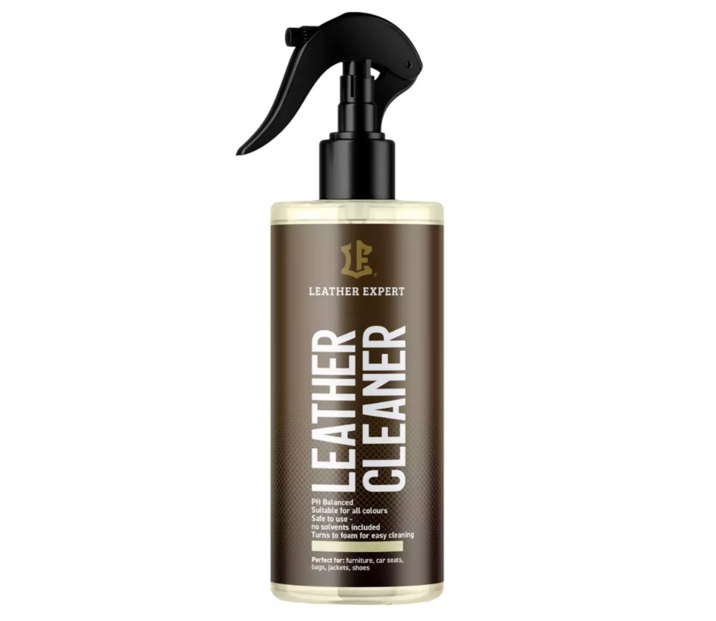 Leather Cleaner е нежен почистващ препарат за гладка кожа с пулверизатор. Ефективно премахва всички видове петна и замърсявания от повърхността на кожата, премахва неприятни миризми (напр. дим от цигари, човешки изпотявания и др.). Leather Expert Cleaner се използва за почистване на най-различни видове гладка кожа в автомобили, върху кожени мебели, галантерия или напр. чанти и др. Leather Expert Cleaner образува богата и стабилна пяна, която допринася за отличен резултат от почистването. Продуктът е безопасен за околната среда, екологичен, биоразградим и не е тестван върху животни. Leather Expert Cleaner има също антистатични свойства, което означава, че след използване на продукта върху кожата не се утаява прах.Основни характеристики