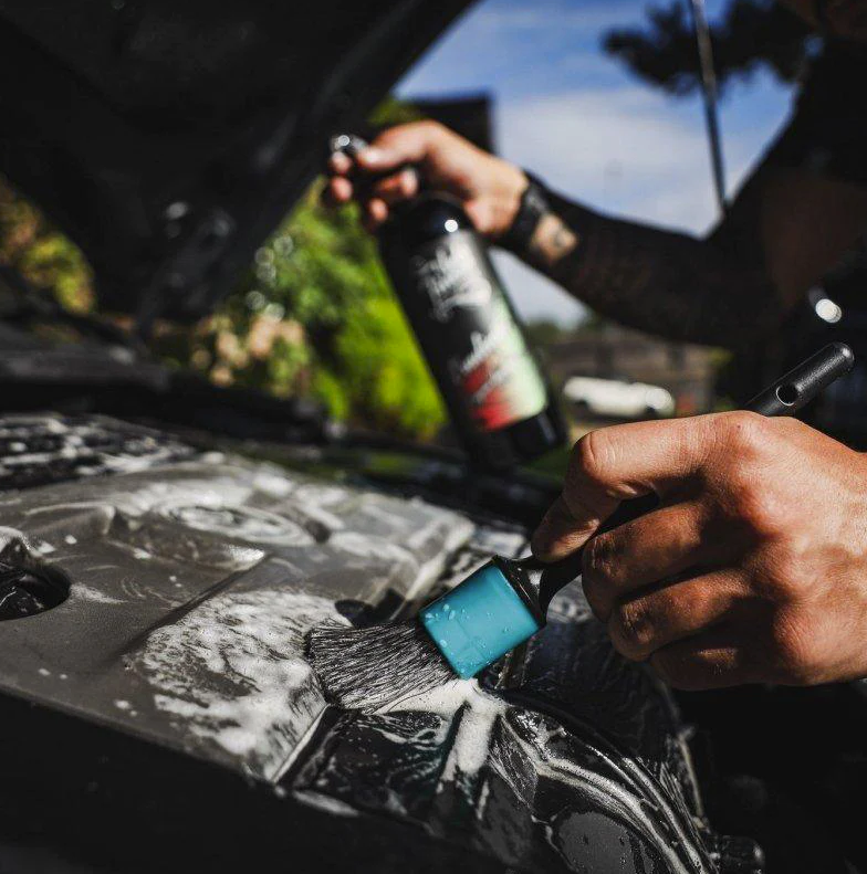 - След това с детайлинг четка разчистете замърсяванията (използвайте химически устойчива четка).