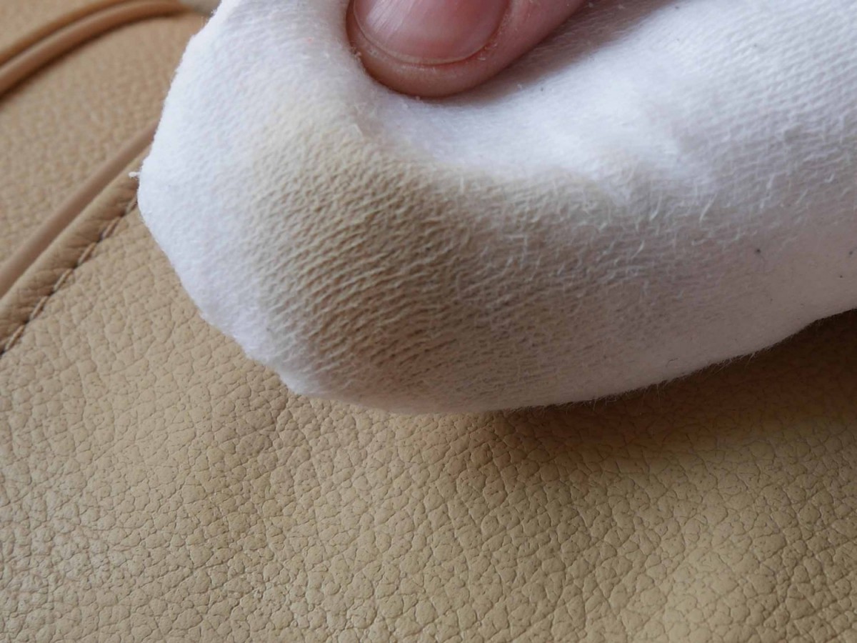 - Веднага щом постигнете почистване, или върху кърпата се появи боя и кожата стане леко лепкава, прекратете почистването!