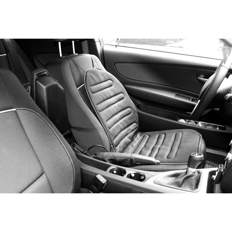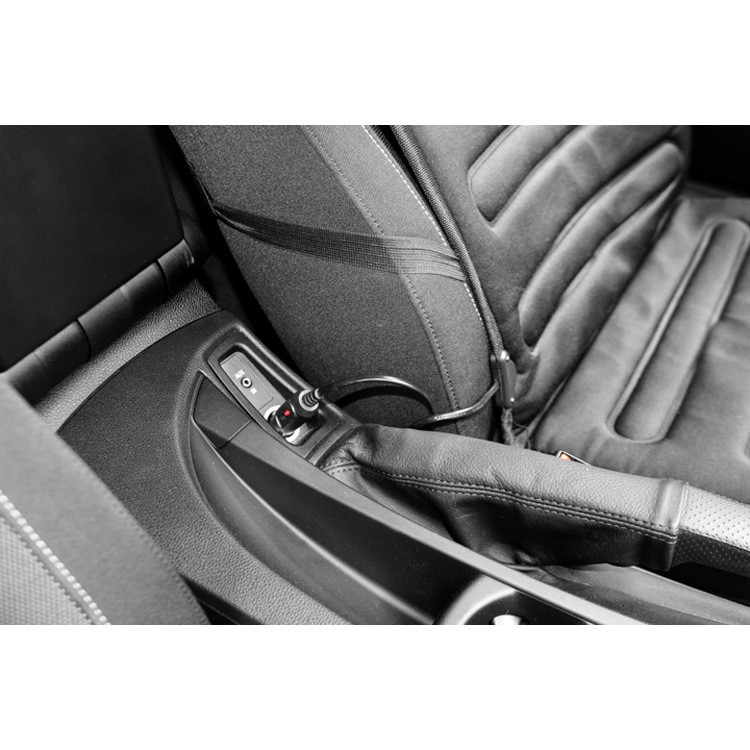 Подгряващ калъф за седалка с термостат и захранване 12 V. Висококачествено черно изпълнение. Универсален за употреба във всички превозни средства. Лесен монтаж на седалката чрез гумени ленти. Калъфът се захранва от контакта на запалката. Вграден термостат гарантира поддържането на зададените стойности на загряване. Висококачествен материал, устойчив на износване.