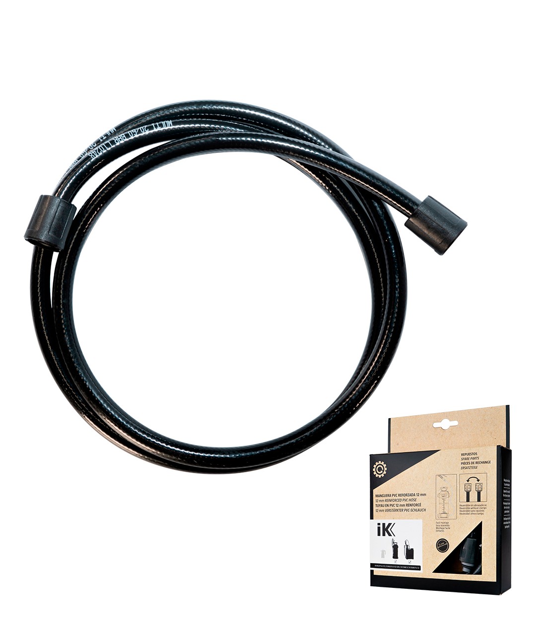 IK 1.5 m reinforced PVC hose е допълнително подсилен маркуч с диаметър 12 mm, предназначен за пресурни пръскачки и пеногенератори IK. Благодарение на здравото PVC изпълнение осигурява дълъг експлоатационен живот, надеждност при работа и удобство при манипулация. Идеален е като резервен или допълнителен аксесоар за професионална и любителска употреба.