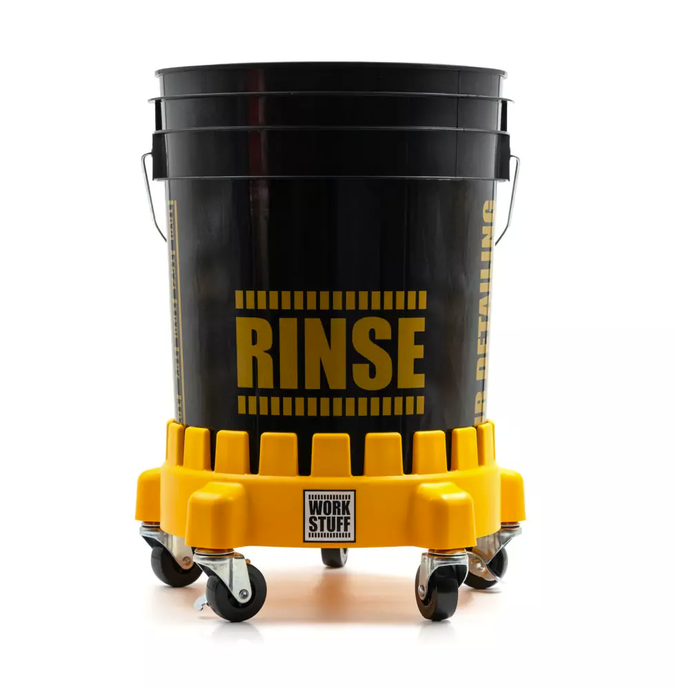 Защо да носите тежка кофа пълна с вода, когато можете лесно да я премествате и да щадите гърба и енергията си? Количката Work Stuff Bucket Dolly е проектирана с мисъл за вашия комфорт, намалявайки натоварването на гръбнака ви, особено след дълга и натоварена работа по автомобили. Тя е оборудвана с пет здрави колела, които се завъртат на 360 градуса, което позволява лесно придвижване на кофата в каквато и да е посока. Благодарение на отличната си маневреност количката остава стабилна дори с пълна кофа и плавно се движи по неравни повърхности като павета, трева или чакъл, което я прави идеална и за външна употреба. Две от петте колела на количката са с спирачки, които предотвратяват случайното движение, особено при наклонен терен. Конструкцията е устойчива на продължителна употреба, голям товар и сурови атмосферни условия. Количката е проектирана да побира повечето кофи на пазара, особено тези с обем 15 до 20 литра, които най-често се използват при измиване. Тази количка се отличава от останалите, защото не изисква винтове или допълнително закрепване — кофата идеално се вписва в специално проектираните вдлъбнатини, така че не е нужно да я фиксирате с винтове. Така спестявате време при поставяне или изваждане на кофата, например когато трябва да източите вода. Захващането е много прецизно и осигурява, че кофата ще остане сигурно на място, няма да се обърне и ще предотврати разливане при движение на количката. Този мобилен транспортьор е проектиран с мисъл за максимална простота и бързо управление, което го прави уникален на пазара за детайлинг аксесоари.Основни характеристики