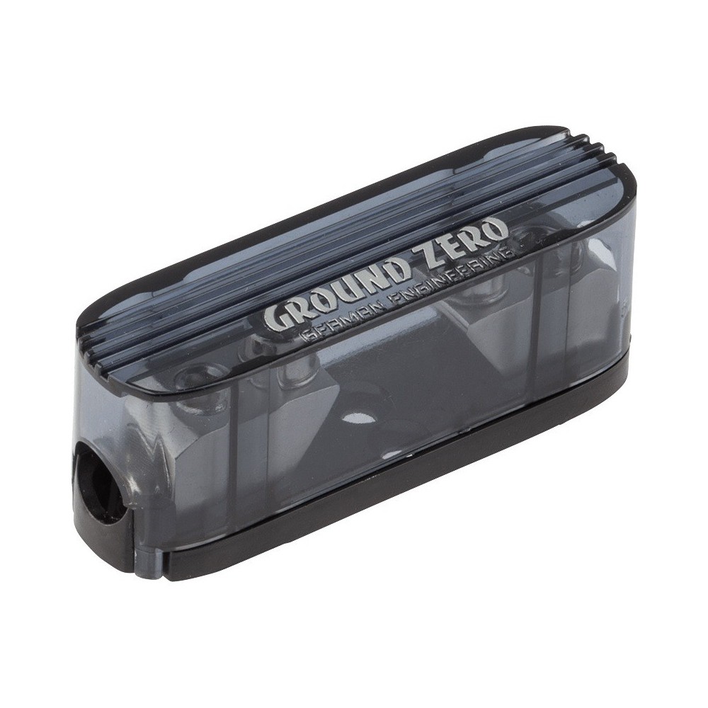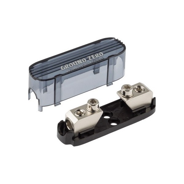 Кутията за предпазители GZFH 1,50/1,50 ANL/MANL от Ground Zero. Този здрав държач за предпазители ANL / Mini ANL впечатлява с винтовите си съединения и има вход и изход за захранващ кабел 50 mm². Изработен е от анодирана масивна мед и разполага с допълнителен пластмасов капак. Като специално предимство са посочени и препоръчителните стойности на предпазителите, които варират в зависимост от сечението на кабела и предоставят оптимални до максимални стойности на предпазителите.Основни характеристики