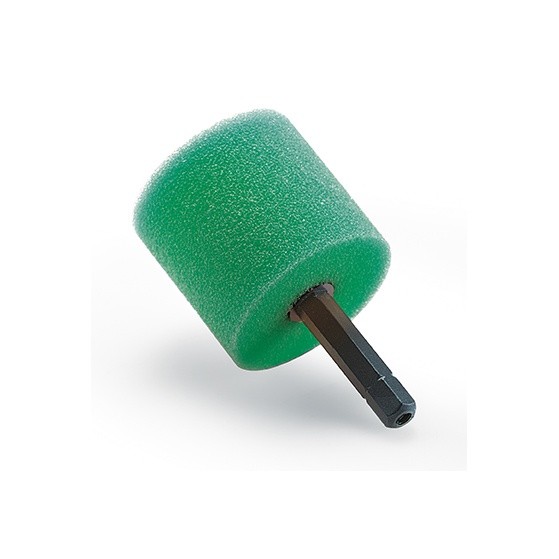 Зелена гъбичка с твърда пянна структура за голямо отнемане на материал и обработка на дълбоки надрасквания. Цилиндричната форма е идеална за тесни лайстни и spot-repair. Безинструментална смяна благодарение на шестостенния фланец на дръжката.