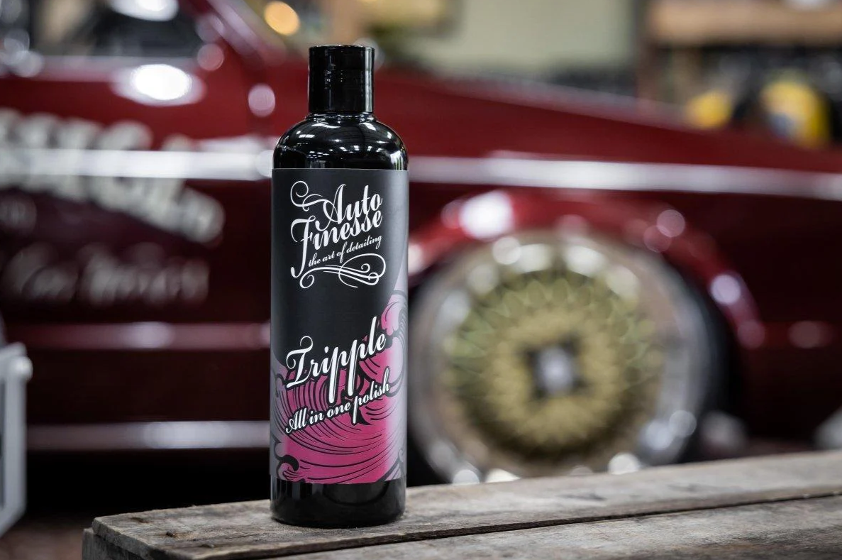 Auto Finesse Tripple All In One Polish безспорно е една от най-ефективните полиращи пасти, които днес са на пазара. Tripple съдържа истински карнаубски восък и глазура. Auto Finesse Tripple е първокласна полираща паста, която придава на боята на вашия автомобил дълбок и мокър блясък. Тази паста е подходяща за премахване на по-малки дефекти в боята, леки надрасквания и окисление. Тя притежава силен почистващ ефект и може да прикрива дребни повреди по боята. Tripple премахва окислението и контаминациите чрез почистващи разтворители. Благодарение на съдържанието на карнаубски восък предлага също дълготрайна защита в порядъка на няколко месеца. Tripple оставя ултратънък защитен слой, който прикрива малките несъвършенства - глазурата. Освен това добавя втори слой от истински T1 карнаубски восък, който защитава повърхността, максимизира блясъка и подсилва цветовете. Tripple работи много бързо. Неговите ултрафини абразивни частици са отлични за светли цветове, а невероятната ефективност се проявява при топли и тъмни цветове като черно, червено и др. Tripple е подходящ както за ръчно, така и за машинно полиране на боята. Както всички продукти на Auto Finesse, така и Tripple е професионален продукт, предназначен за опитни детайлъри. Благодарение на високата ефективност и лесната приложимост, с този продукт отлични резултати могат да постигнат и начинаещи.