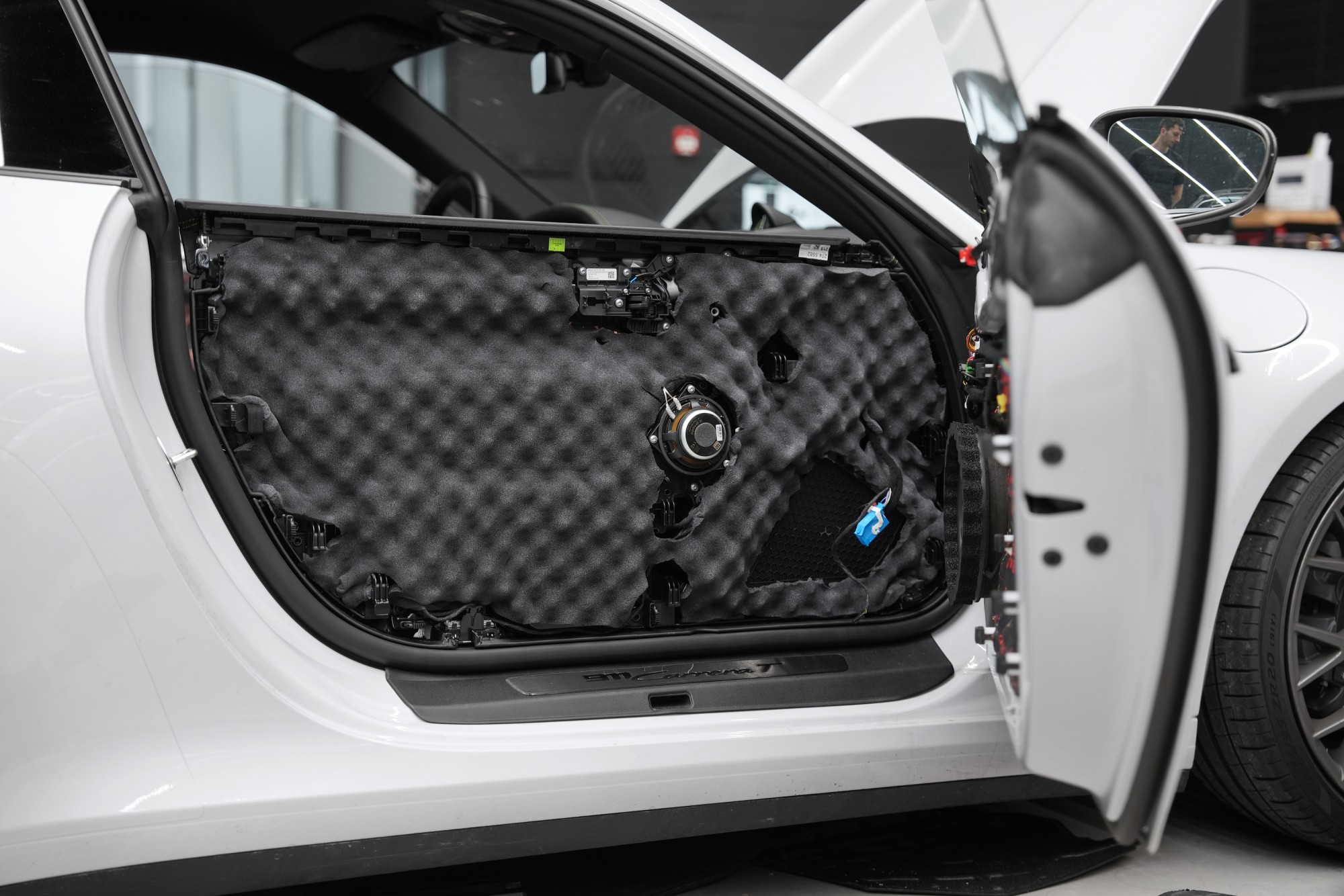 Финалното настройване извършихме чрез измерване на честотната характеристика на говорителите и настройване на резултатите в софтуера на DSP процесора, за да постигнем балансиран, пространствено правдив и динамичен звук, който напълно уважава акустиката на интериора на Porsche 911. Резултатът е озвучаване, което по качество и енергия се допълва перфектно с общия характер на автомобила и усилва преживяването от всяко пътуване.