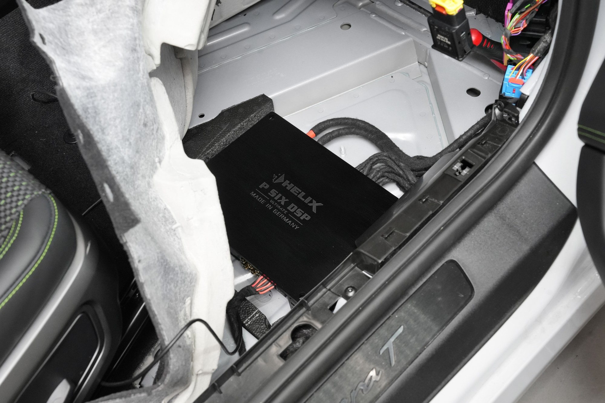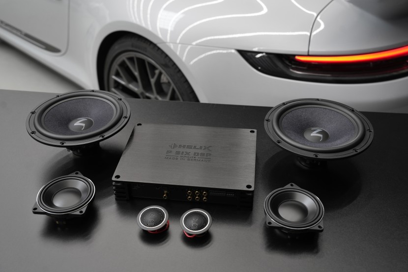 В моделите Porsche най-често използваме доказаната комбинация от високочестотни и средночестотни говорители Morel, които са сред върха по отношение на детайл и вярност на звука. Тези излъчватели допълнихме с мощни 200 мм средночестотни баси Gladen от най-високата серия Zeta. Резултатът е трипътен (триканален) система, която впечатлява не само с качеството на възпроизвеждане, но и с отличната динамика, която перфектно отговаря на спортния дух на автомобила. За достатъчно мощност се грижи усилвател Helix с интегриран DSP процесор, дискретно скрит в подовата част.