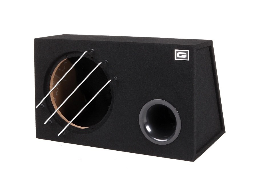 - Корпусът е покрит с черен килим, оборудван с басрефлекс в дясната част и терминал за свързване.