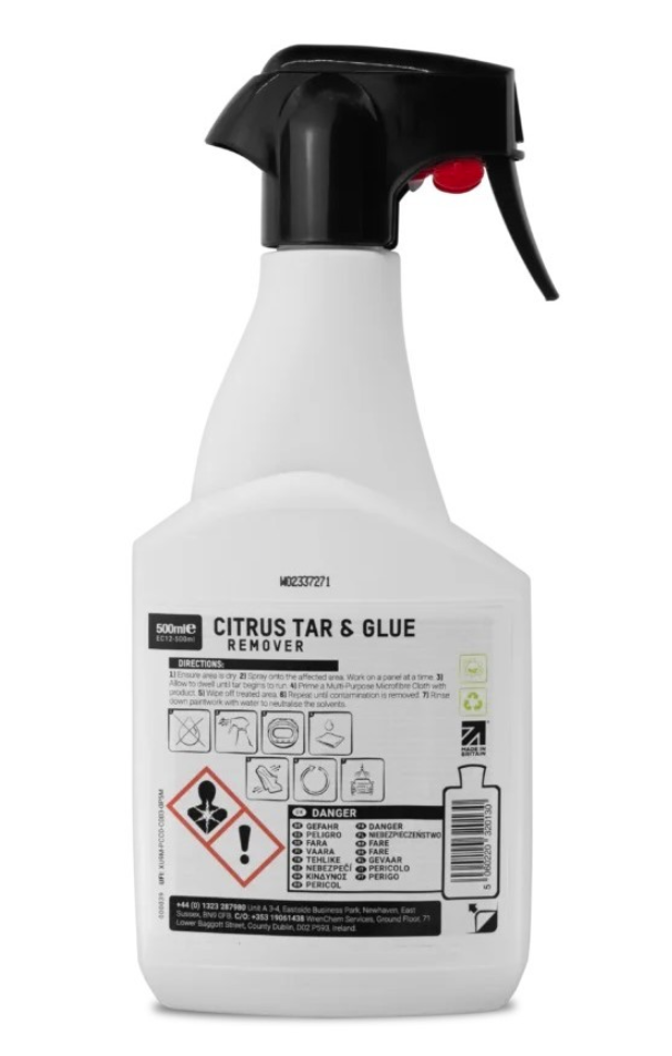 ValetPRO Citrus Tar & Glue Remover прави точно това, което казва името му - отстранява асфалт и остатъци от лепило. Това е рафиниран алифатен разтворител, допълнен с натурални цитрусови масла, чието действие разтваря асфалта и лепилото и след това те могат да бъдат деликатно почистени. Използва се неразреден.