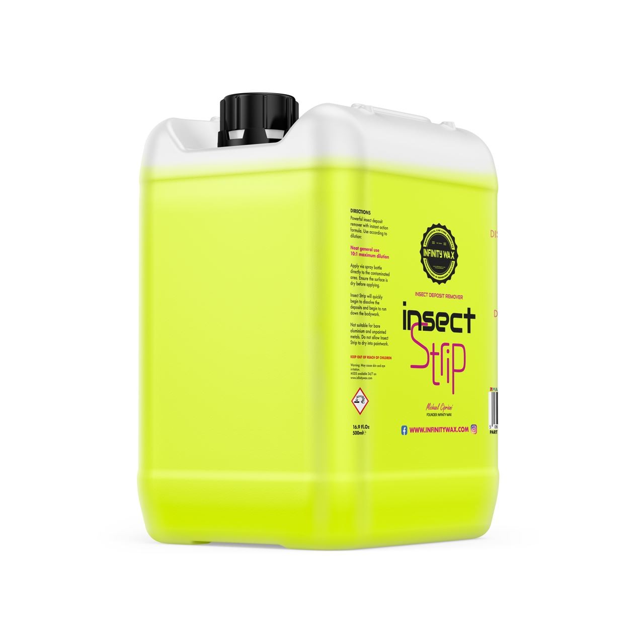 Препаратът Insect Strip действа, като разгражда мастните киселини в останките от насекоми, освобождавайки прилепналите отлагания от лака без необходимост от контакт с каросерията. Това е продукт, който веднага започва да премахва опасните остатъци от насекоми. След пръскане се вижда оранжев или червен оттичащ кал от насекомите. Препаратът за насекоми използва усъвършенствана комбинация от синтетични детергенти, комбинирани с лек разтворител за улесняване на проникването. Това осигурява незабавно действие в целевата зона и в същото време е безопасен за употреба на почти всички повърхности. Insect Strip има способността да премахне повече от 99% от упоритите остатъци от насекоми, без да е необходимо да докосвате лака. Той предлага универсалност при приложение и много ниски разходи за употреба, което прави този премахвач на насекоми най-високо оценяваният от британските професионалисти в областта на детейлинга. Insect Strip е най-подходящ за използване преди предпране на автомобила. Това му дава време да подейства върху замърсяванията без наличието на вода от изплакване. Може да се използва и на мокра повърхност, но това леко ще удължи времето му на действие.Основни характеристики