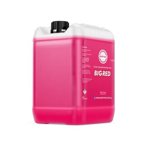Big Red е високоефективен премахвач на пътен филм и мазнини от трафика, доставян като ултра концентрат. Пет литра препарат могат да се разредят до 200 литра разтвор готов за употреба, който след това може да се приложи чрез инжекционна система или с ръчен пулверизатор с помпа, накрайник за снежна пяна и т.н. Big Red е произведен от екологично щадящ материал и е 89% биоразградим. След разреждане не е корозивен и е безопасен за повечето материали, с изключение на необработени или непоанирани сурови метали и алуминий. Big Red ви позволява да пренасяте фактически "200-литров варел почистващ препарат" навсякъде в 5-литрова, ултра концентрирана форма, като на място добавите вода и получите крайния продукт. Използвайте като част от предварителното измиване за премахване на силна пътна мръсотия, сол, пясък и наслагвания от пътен филм. Big Red трябва да се напръска върху превозното средство без предварително изплакване, да се остави да действа до 5 минути и след това да се отмие с високо налягане, за да се отстрани до 95% от видимите замърсявания. Алтернативно може да се използва в комбинация с пенна система и четка, което е особено ефективно за странични платформи и по-големи превозни средства, където е необходим по-дълъг временен контакт.Основни характеристики