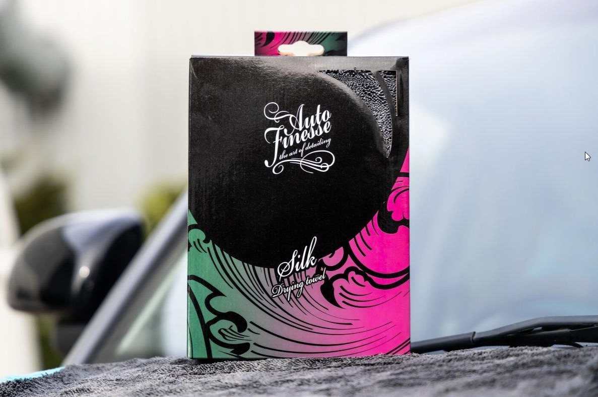 Auto Finesse Silk Drying Towel е микрофибърна кърпа за подсушаване от усукана микрофибърна нишка с размер 92 x 62 cm. Много мека кърпа в дизайн twisted pile е идеалният аксесоар за ентусиасти и професионалисти, които искат да подсушат перфектно своя автомобил. Тази изключително голяма премиум кърпа е проектирана да се плъзга свободно по външните повърхности и бързо да абсорбира цялата вода в нишките. Този специален дизайн съдържа микрофибър с усукана примка за най-бързо и най-ефективно поглъщане на влага без риск от нарушаване на вече нанесените защитни слоеве. Silk Drying Towel е с микро-суедени ръбове.