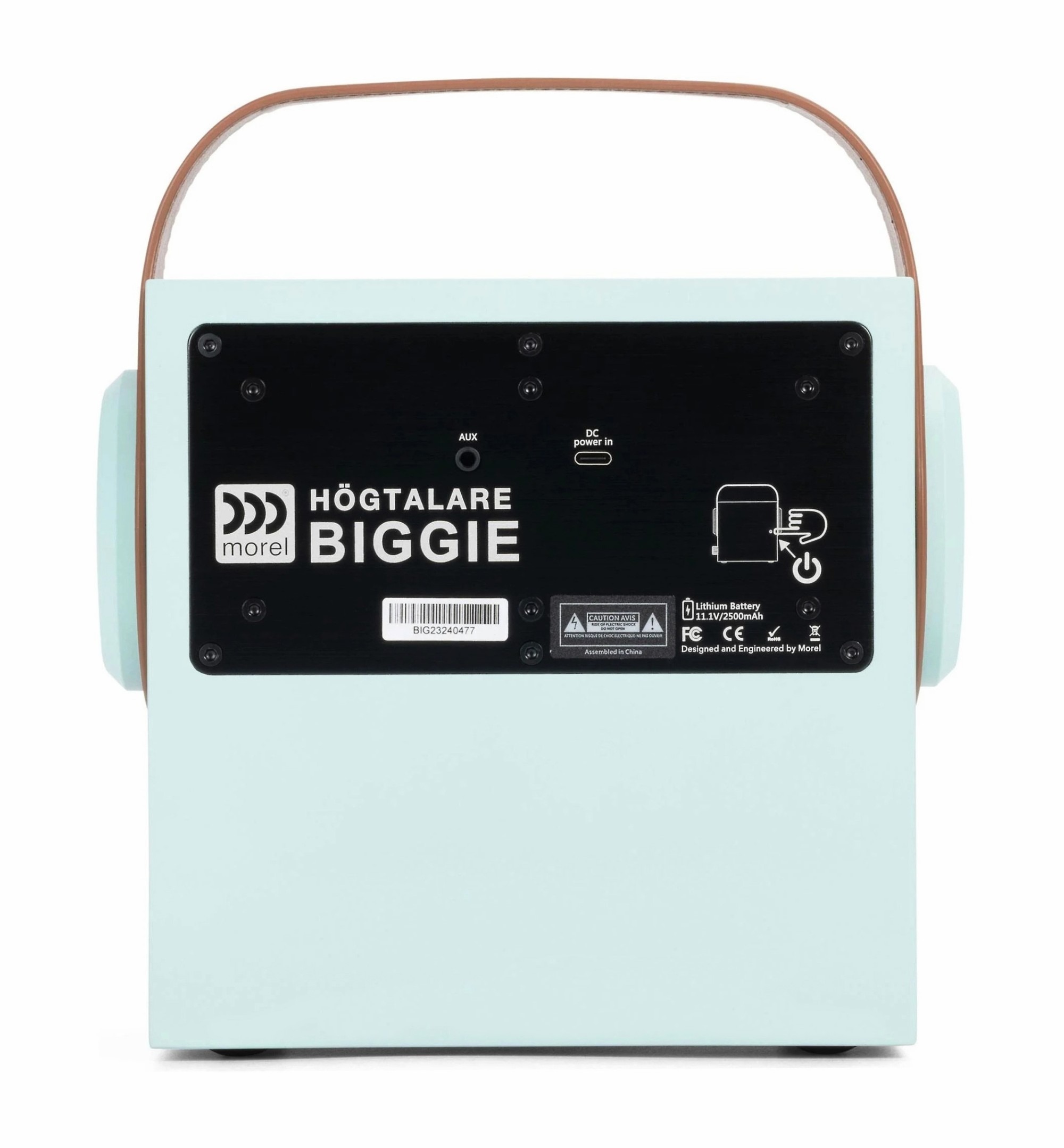 Сърцето на високоговорителя Biggie са говорителите, проектирани и произведени директно от Morel. За разлика от повечето преносими високоговорители, Biggie използва истинска двулентова конструкция на bassreflex система. В основата е специално разработеният 4" (100 mm) вуфер с голям ход, който осигурява стегната и прецизна възпроизвеждане на басовите честоти, докато за високите честоти се грижи легендарният 1" (25 mm) копринен високочестотен говорител Morel, известен с финността, чистотата и естественото възпроизвеждане на детайли. Всеки говорител има собствен усилвател, което позволява по‑точен контрол над възпроизвеждането и по‑добра динамика на звука. Резултатът е високоговорител, който може да създаде изненадващо просторна и балансирана звукова сцена дори при компактните си размери.