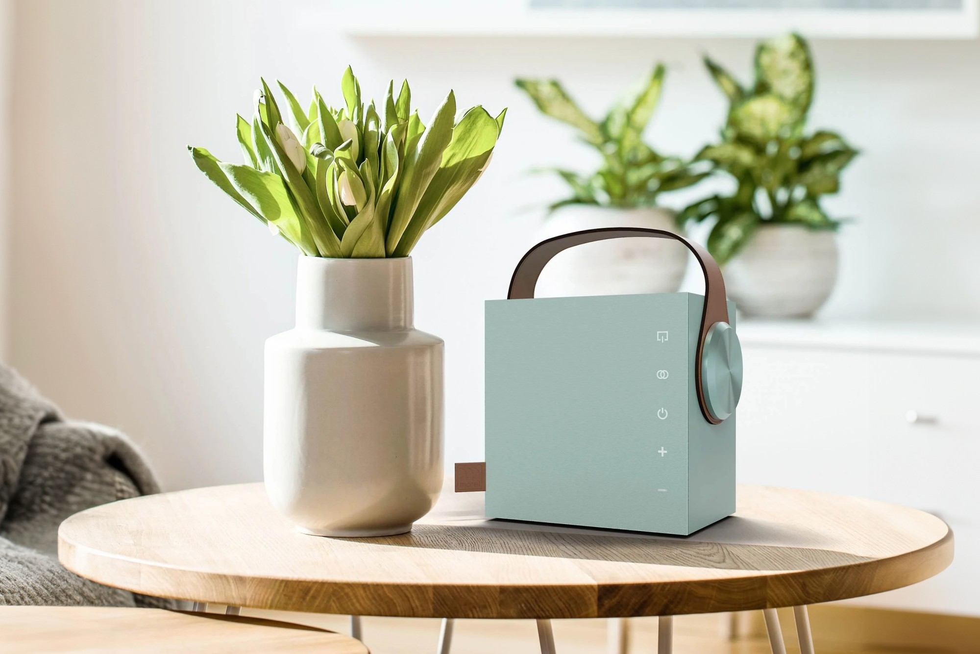 Дизайнът на високоговорителя Biggie съчетава минималистична естетика с практични детайли. Компактната квадратна форма следва дизайна на модела Högtalare, този път обаче в по‑малко и лесно преносимо изпълнение. Дръжката с повърхност, напомняща кожа (animal‑friendly), улеснява пренасянето и може да бъде свалена. Biggie е достъпен в широка гама цветови варианти, които позволяват да го комбинирате с интериора или личния си стил. Налично в черно, бяло, червено, тъмносиньо, златистожълто, светлосиньо, маслинено зелено и тюркоазено, а за почитателите на естествените материали има и елегантна версия с дъбово покритие.