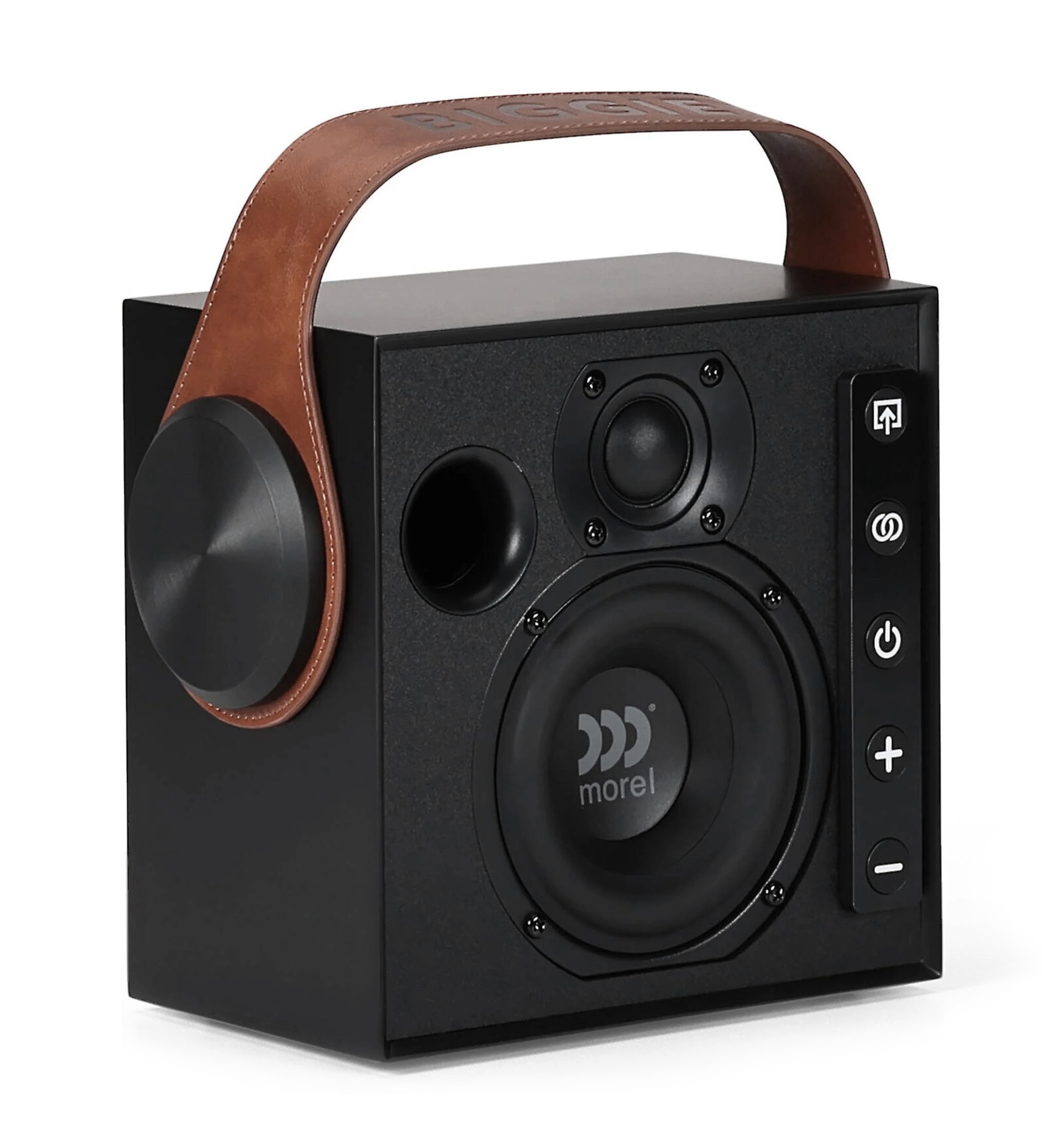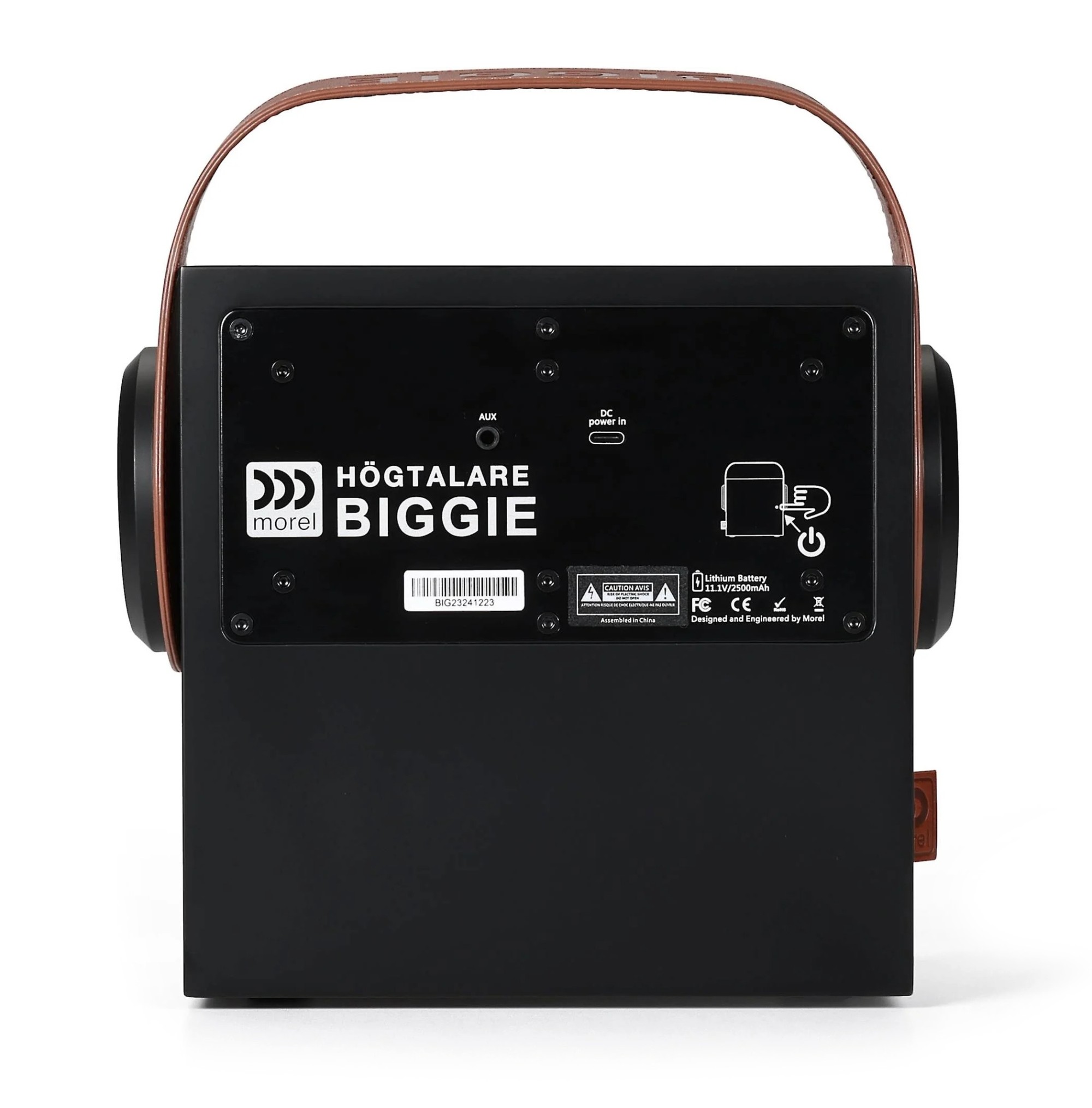 Сърцето на високоговорителя Biggie са говорителите, проектирани и произведени директно от Morel. За разлика от повечето преносими високоговорители, Biggie използва истинска двулентова конструкция на bassreflex система. В основата е специално разработеният 4" (100 mm) вуфер с голям ход, който осигурява стегната и прецизна възпроизвеждане на басовите честоти, докато за високите честоти се грижи легендарният 1" (25 mm) копринен високочестотен говорител Morel, известен с финността, чистотата и естественото възпроизвеждане на детайли. Всеки говорител има собствен усилвател, което позволява по‑точен контрол над възпроизвеждането и по‑добра динамика на звука. Резултатът е високоговорител, който може да създаде изненадващо просторна и балансирана звукова сцена дори при компактните си размери.