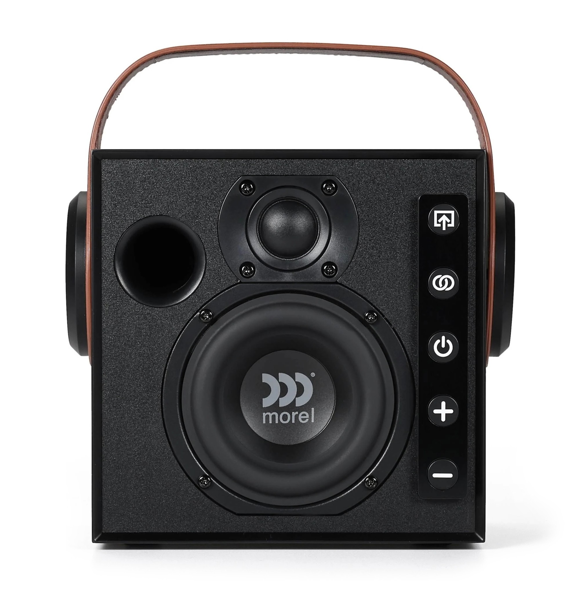 Morel Biggie не е просто още един Bluetooth високоговорител. Това е компактен двулентов hi‑fi система, проектирана да пренесе типичния звук на марката Morel и в преносим формат. Израелската компания Morel е сред уважаваните производители в света на high‑end аудиото и нейните високоговорители са дълго ценени от аудиофилите за естествения и музикален характер на звука. Biggie продължава тази традиция и пренася опита на марката в съвременен безжичен високоговорител, който комбинира компактни размери, прецизна конструкция и звуково качество, значително надхвърлящо обичайния стандарт на Bluetooth високоговорителите.