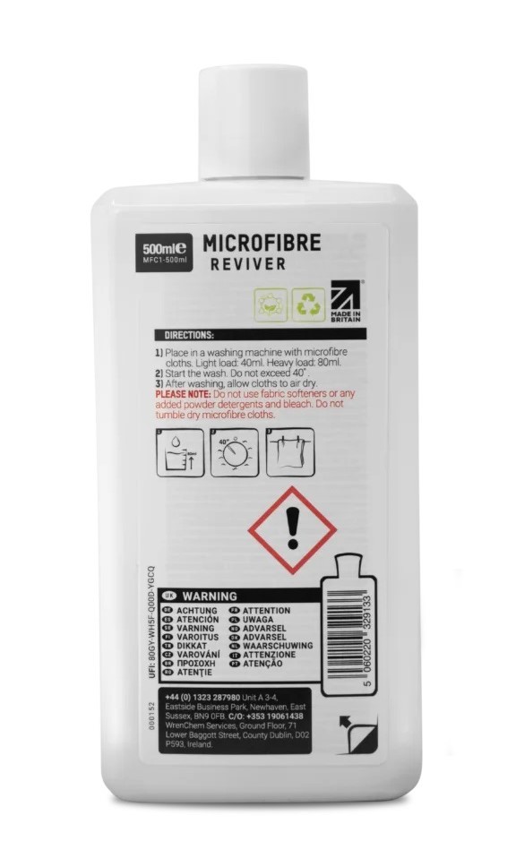 ValetPRO Microfibre Reviver е създаден за да премахва всички замърсявания и да деконтаминира микрофибърните изделия при пране. Благодарение на Microfibre Reviver кърпите и хавлиите от микрофибър са готови за многократна употреба. Уникалният състав е много ефективен, но за разлика от обикновените почистващи средства не е агресивен, което позволява на микрофибърните кърпи и хавлии да запазят своята мекота и преди всичко дълъг живот.