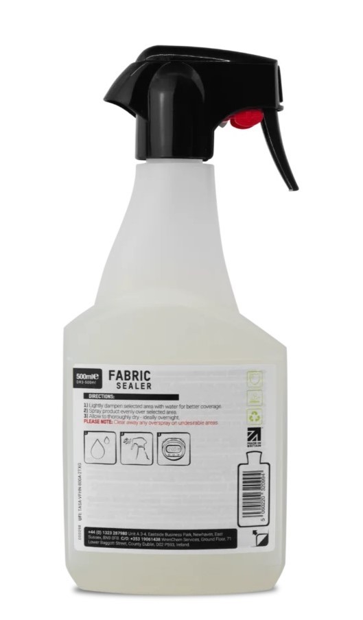 ValetPRO Fabric Sealer е лесен за употреба защитен препарат (импрегнатор) за всички текстилни повърхности в интериора на вашия автомобил. Оставя тънък хидрофобен слой, който улеснява премахването на петна (напр. от кафе, напитки и т.н.).Основни характеристики