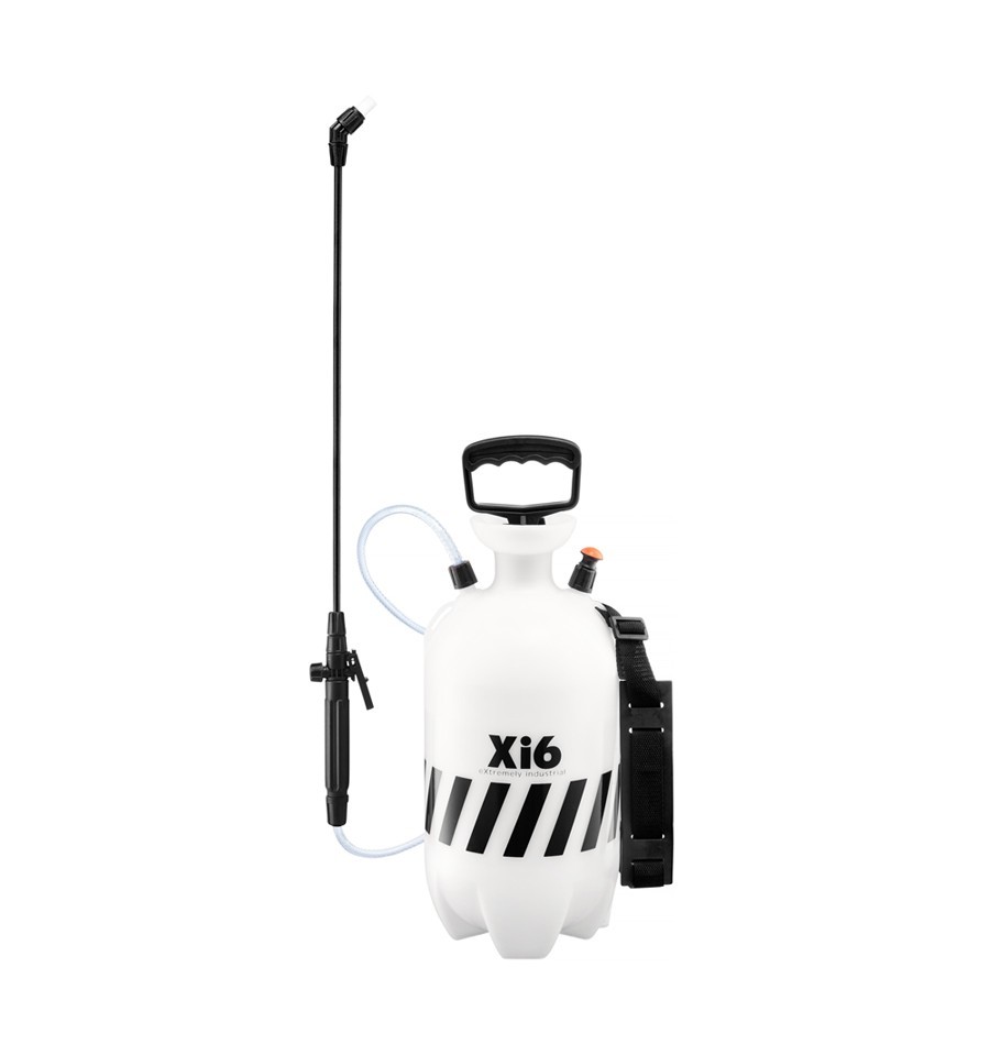 Екстремно индустриален - Xi6 е икономична версия на продукта Orion Pro+. Разликата е в използването на друг модел резервоар, което значително влияе на цената му. Това е пръскачка, произведена за приложение на агресивни химикали. Тя е устойчива на вещества, най-често използвани в строителството, пътната индустрия, нефтената индустрия (например при нанасяне на нефтени продукти). Използва се в автомивки, на строителни обекти, в механи и при миене и защита на машини и съоръжения (например в строителството). Работи отлично и при миене на автомобили. Сигурностният вентил предпазва устройството и потребителя от натрупване на високо налягане в резервоара. Дюзата на пръскачката може да се регулира, което позволява постигане на желания степен на разпръскване. При пръскачките Xi6 са използвани уплътнения от материал Viton. Благодарение на това те се отличават с повишена устойчивост на агресивни химични агенти. Простият и доказан дизайн позволява лесна подмяна на уплътненията и обслужване на пръскачката без използване на инструменти. Транспортната релса осигурява удобно използване на пръскачката.Основни характеристики