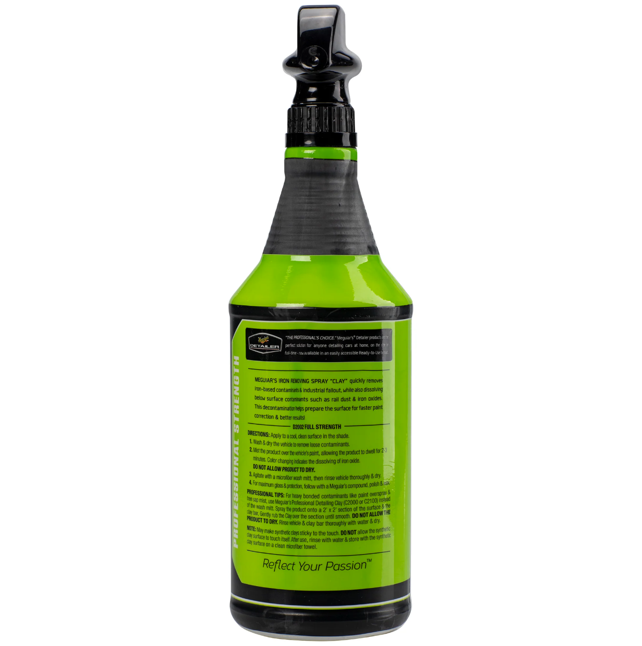 Meguiar’s Iron Removing Spray „Clay“ е професионална химическа деконтаминационна формула, създадена за ефективно почистване на екстериора на автомобила. Премахва свързани железни частици, железопътен прах и индустриални отлагания, които не могат да се отстранят с обикновено измиване. Действа като „течен clay“ процес без използване на абразиви и значително подобрява гладкостта на повърхността, като подготвя боята, джантите и стъклата за последващо професионално възстановяване на блясъка и защитата. Продуктът е готов за употреба (RTU).