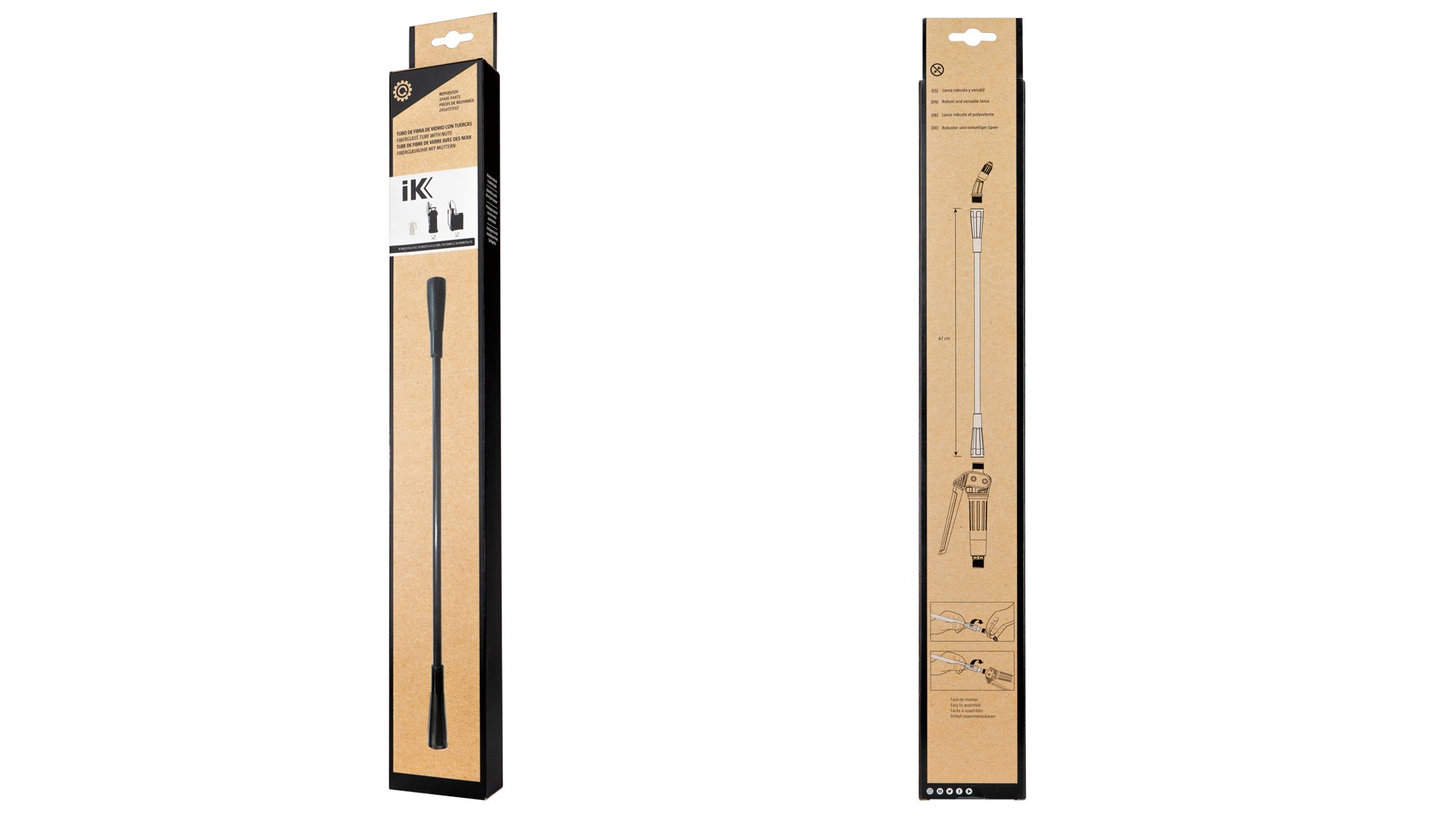IK Fibreglass tube with nuts 47 cm е резервна удължителна приставка от фибростъкло с дължина 47 cm, предназначена за наляганни съдове IK. Благодарение на здрава конструкция и универсално приложение увеличава удобството при нанасяне и позволява лесен достъп дори до по-трудно достижими места. Идеален допълнителен аксесоар за професионална и любителска употреба.