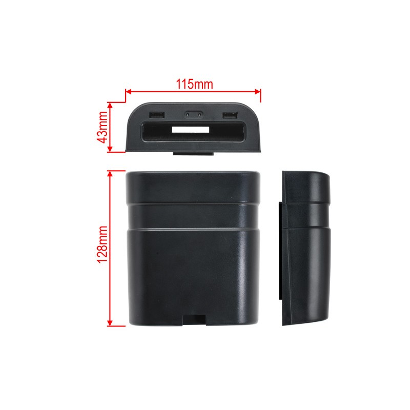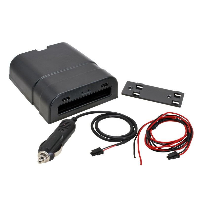 Tato bezdrátová nabíjecí kapsa může být namontována do odkládací schránky, loketní opěrky nebo na jakýkoli plochý povrch ve vašem vozidle pro bezdrátově nabíjení smartphone s podporou Qi bezdrátového nabíjení. Kapsa je vybavena pružinovým mechanizmem, který zajišťuje pevné uchycení telefonu během jízdy. Dvě malé LED kontrolky signalizují stav nabíjení telefonu. Kapsa má také dva porty USB, což vám dává možnost nabíjet další dvě zařízení. Připojení napájení v automobilu je možné do CL zásuvky nebo pevné připojení napájení. Balení obsahuje kabelový svazek s CL zástrčkou a kabelový svazek s volnými vodiči.