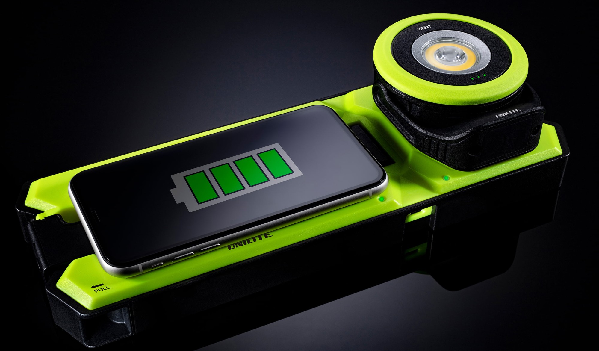 WCHX7 е първият компактен работен фенер с безжично зареждане. Мощната COB LED с 700 lm и 6500 K осигурява интензивно, чисто бяло осветление, допълнено от насочена LED с мощност 275 lm за осветяване на по-големи разстояния. Има изключително здрава конструкция от найлон, алуминий и TPR и отговаря на степени на защита IP65 и IK07, което гарантира висока устойчивост на прах и вода, повишена удароустойчивост и защита при падане от височина до 2 m. 180° въртящата се стойка с изключително силна магнитна основа дава на този работен прожектор ненадмината универсалност. Може да се зарежда с включения 1m USB-C кабел за зареждане или още по-добре безжично чрез напълно новите безжични зарядни подложки WCSGL & WCDBL.