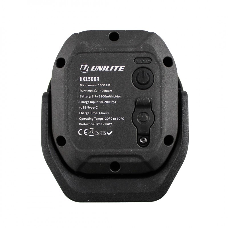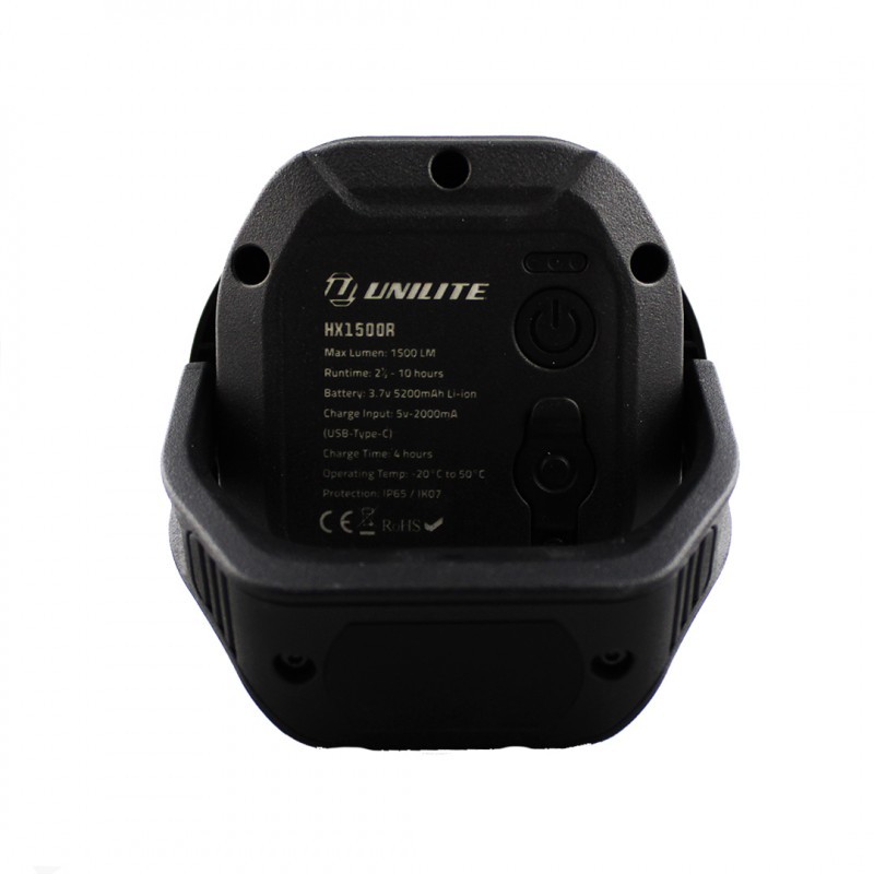 HX1500R е компактен акумулаторен работен прожектор с осветеност 1500 лумена. Неговите двойни LED диоди предоставят както широкоразпръснат, така и точков лъч. Компактната конструкция на светлинния източник е поместена в здрав найлонов полимер и има 180° въртяща се магнитна основа. Самото осветително тяло е изключително издръжливо. Степен на защита IP65 предотвратява проникването на прах и вода.