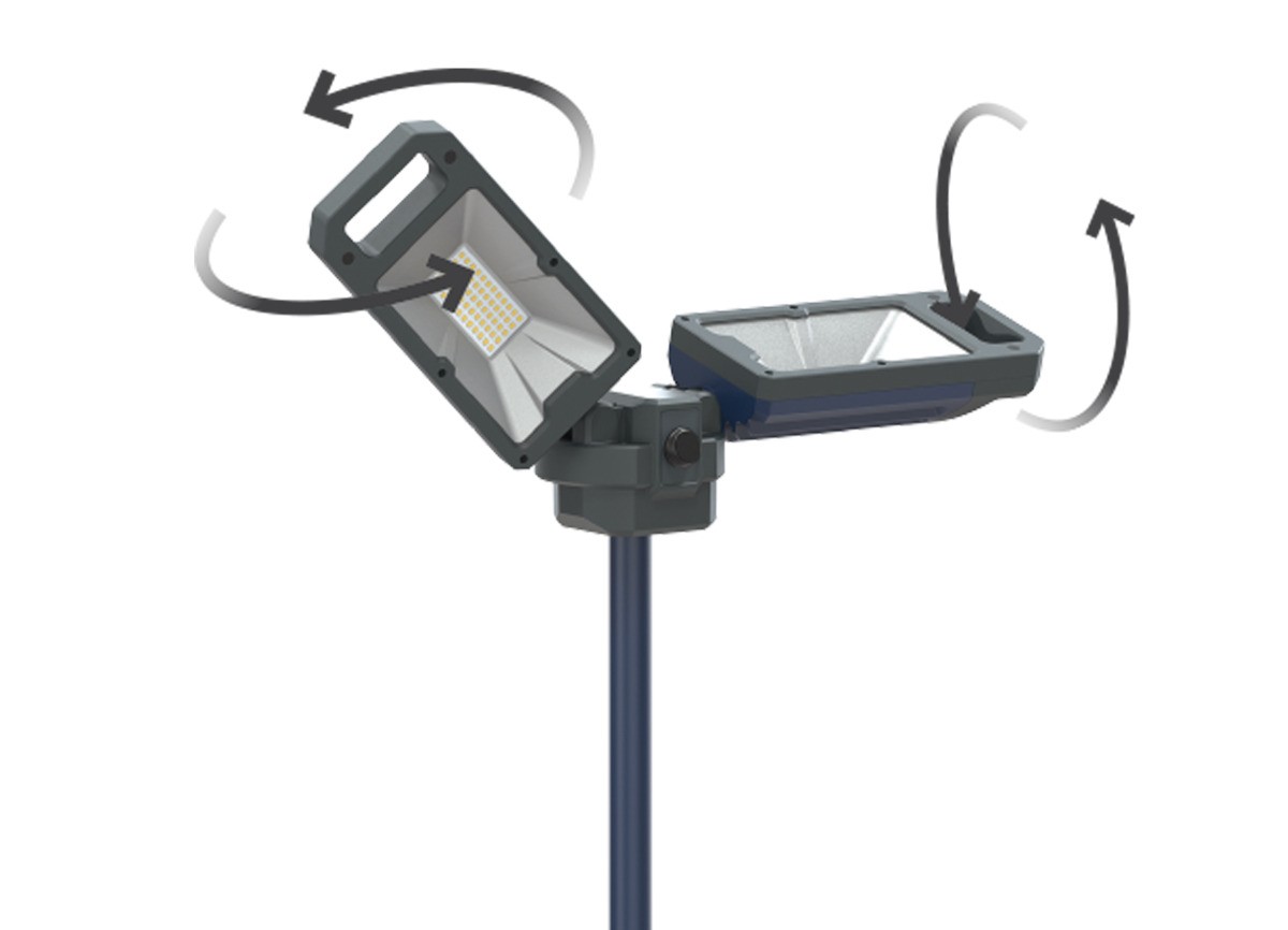 - Вграден статив с два рефлектора, осигуряващи до 5 000 лумена.
