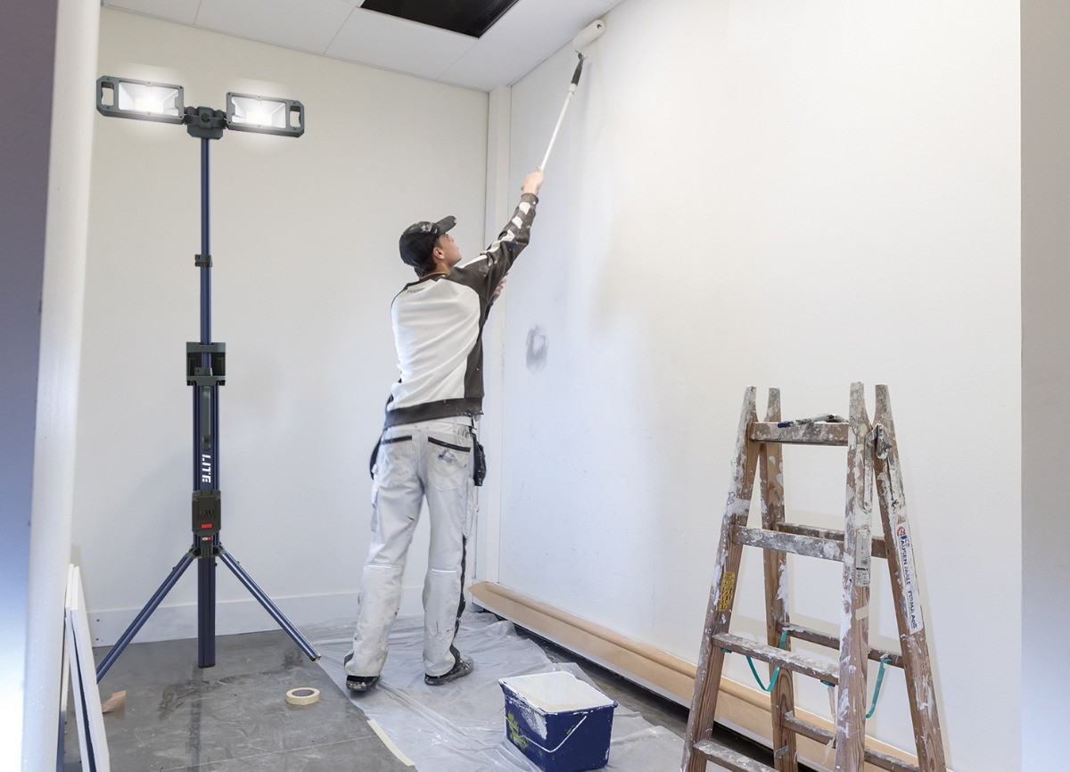 професионална работна лампа с вграден статив, 5000 лумена, за CAS акумулатор