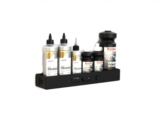 Функционален рафт за съхранение на полиращи пасти, detailer-и, вакси и други химикали. Дълбочината от 86 mm позволява съхранение дори на по-големи опаковки. Отворите за монтиране към стената са в задната част на рафта и по този начин гарантират стабилност. Качественият метал е боядисан с черно прахово покритие, което предпазва рафта от окисляване. Размери: 800 (ширина) x 95 (дълбочина) x 60 (височина) mm.