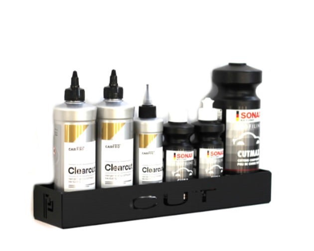 Практичен и функционален рафт за съхранение на полиращи пасти или смазки. Дълбочината от 86 mm позволява съхранение и на по-големи опаковки. Отворите за монтиране за завиване към стената са разположени в задната част на рафта, което гарантира пълна стабилност. Качественият метал е покрит с прахово боядисване, което предпазва от окисляване.