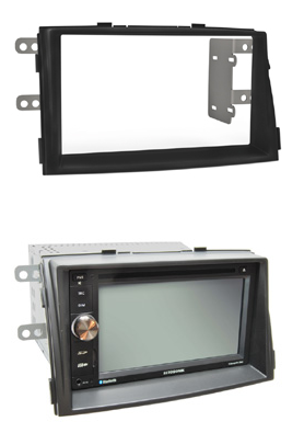 - plastový adaptér, boční kovové příchytky, instalační materiál (při instaci není nutné používat kovový rámeček autorádia)