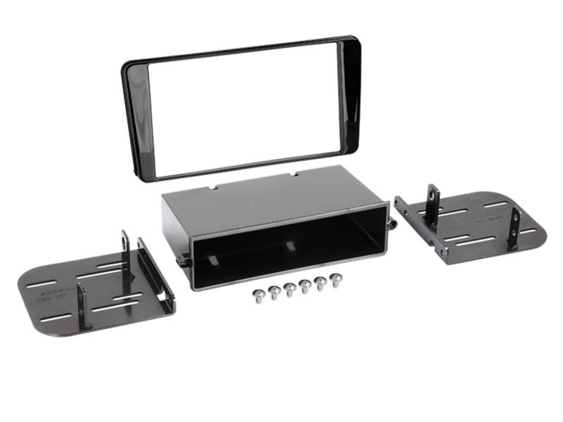- Опаковката съдържа: пластмасова 2DIN рамка, пластмасов корпус за монтаж с 1DIN авторадио, странични пластмасови държачи, винтове.