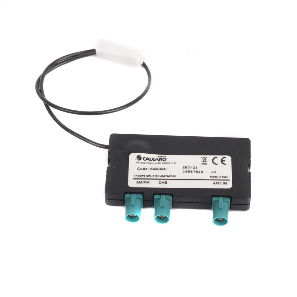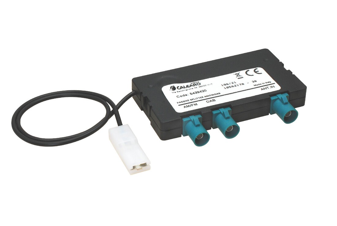 Разклонител на радиосигнал за прием на AM-FM аналогов радиосигнал и DAB-DAB+ цифров радиосигнал. Предназначен е за активни или пасивни автомобилни антени AM/FM, подготвени за прием на цифров сигнал. Разклонителят е подходящ и за антени с фантомно захранване 12 V.