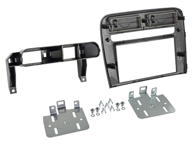 - Опаковката съдържа: пластмасов адаптер 2DIN, част с въздуховоди за вентилация, странични метални скоби, винтове и щипки, инструкция за монтаж в автомобила.