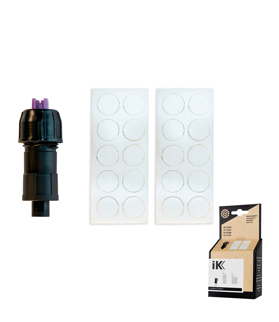 IK FOAM 1.5 / PRO 2 kit е комплект резервни накрайници и филтри, предназначен за пянообразуващи пръскачки IK. Съдържа резервни накрайници и две плочи с вградените филтри, общо 20 броя филтри, които осигуряват правилната работа и дълъг живот на пянообразувача. Този ремонтен комплект е идеално допълнение за поддържане на максималната ефективност при работа.