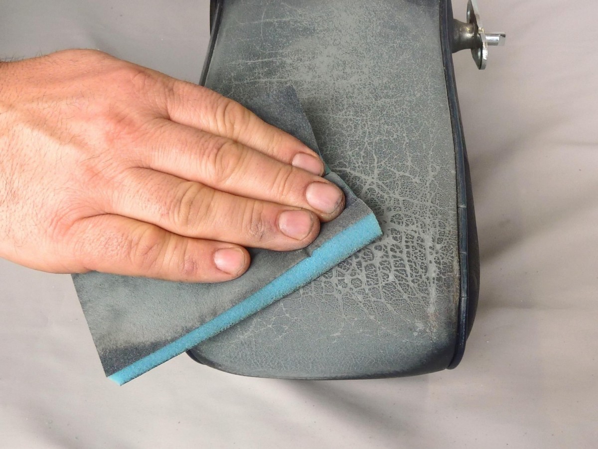 - Грубите места нежно изгладете с абразивна гъба Leder Schleifpad така, че да не влошите повредата.