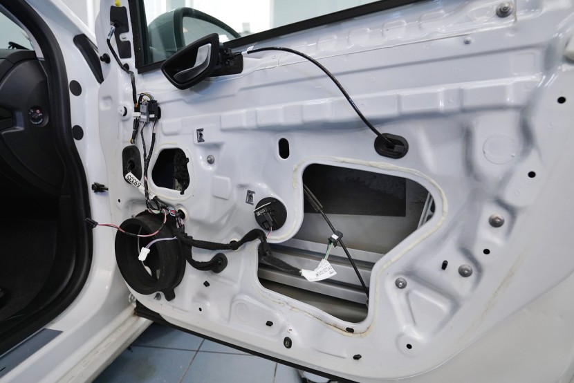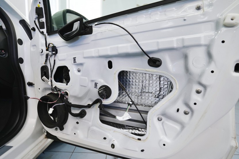 Смяна на говорителите в предните и задните врати на автомобил Renault Megane от 4-то поколение. За свързване към фабричното радио в средния клас най-често избираме говорители от италианския производител Hertz от моделната серия Cento. Тези компоненти в този ценови клас се отличават не само с много над средното качество на звука, но и с изключителна чувствителност. Благодарение на това те могат да свирят много добре и с по-слаб източник като фабричните радио. Във френските автомобили радиата имат още по-ниска мощност, затова изборът беше ясен. Благодарение на кабелните адаптери използвахме заводската окабеляване и смяната на говорителите е без намеса в оригиналната електроинсталация на автомобила. Разбира се, беше извършено и звукоизолиране на вратите, което значително подобрява общата акустика на говорителите, особено басовата им част. В рамките на инсталацията също така обезшумихме вратите.