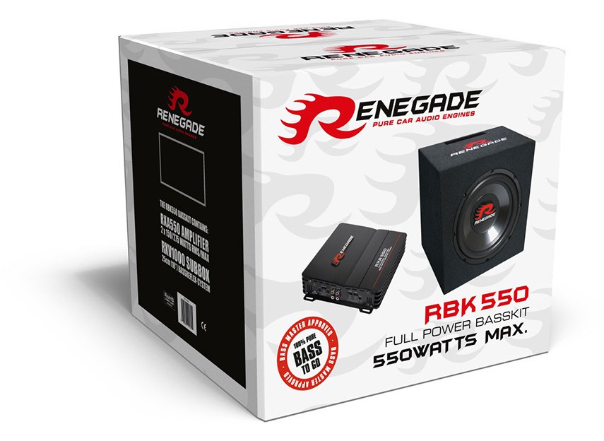 Комплекти субуфер + усилвател За нас голяма изненада е точно този промоционален комплект Renegade, чиито субуфер постига звукови качества, значително надвишаващи тези на по-скъпи тонколони. Не се притеснявайте от по-ниската мощност на усилвателя — тя е напълно достатъчна за задвижване на субуфера. Препоръчваме го! За успешно свързване препоръчваме да закупите кабелен комплект + 1 до 2 метра говорителен кабел, вижте по-долу. Renegade RBK550 е опакован в красива опаковка и е отличен като подарък.