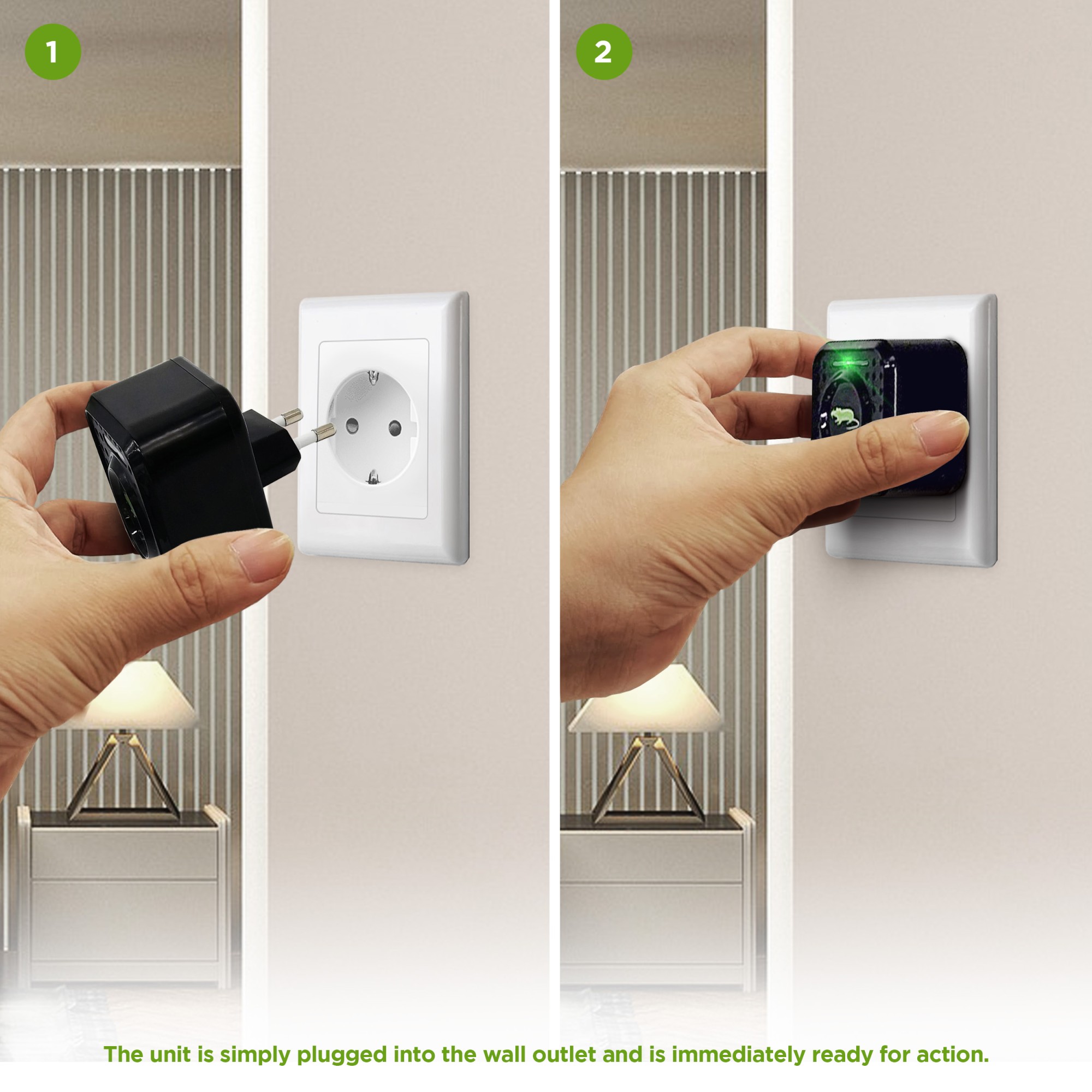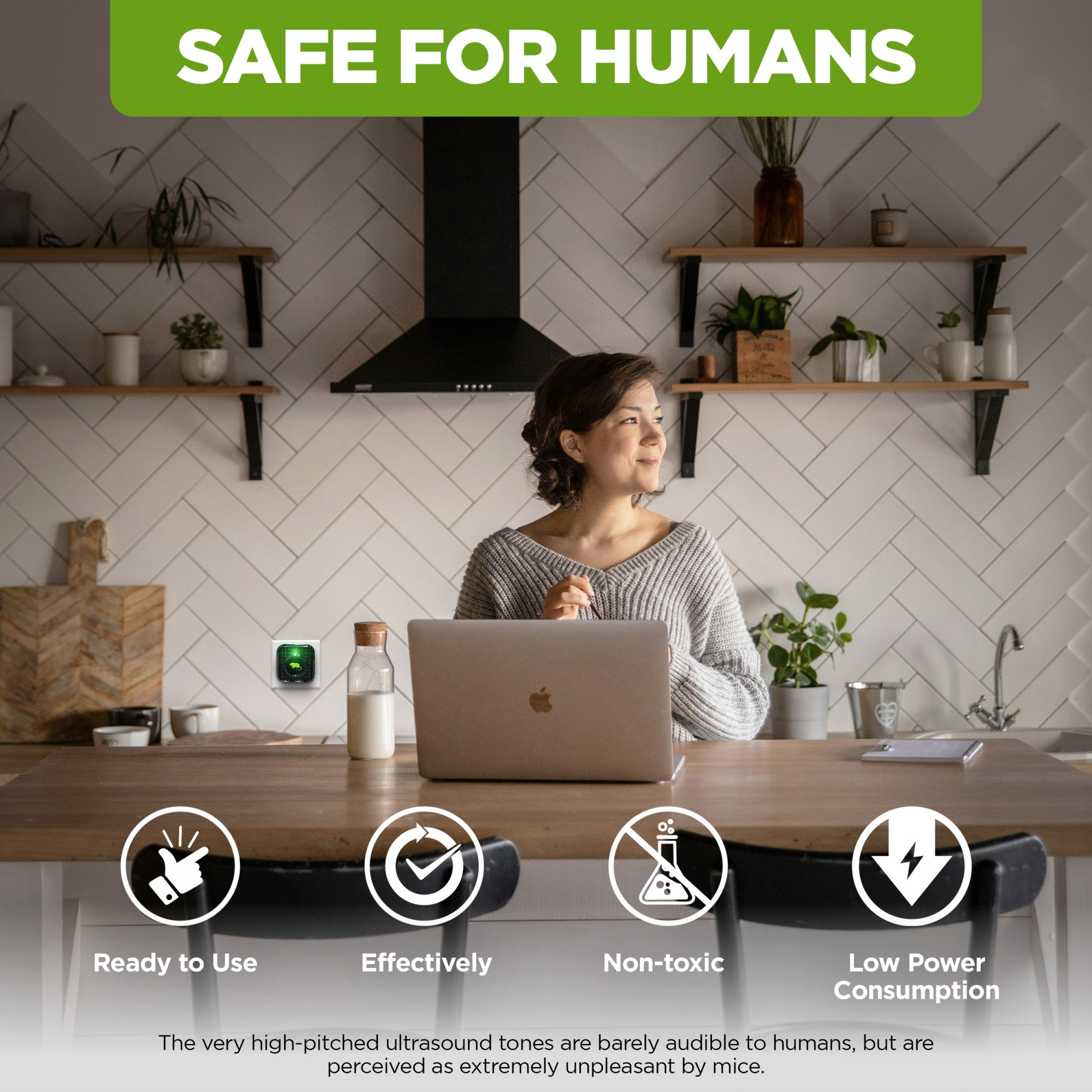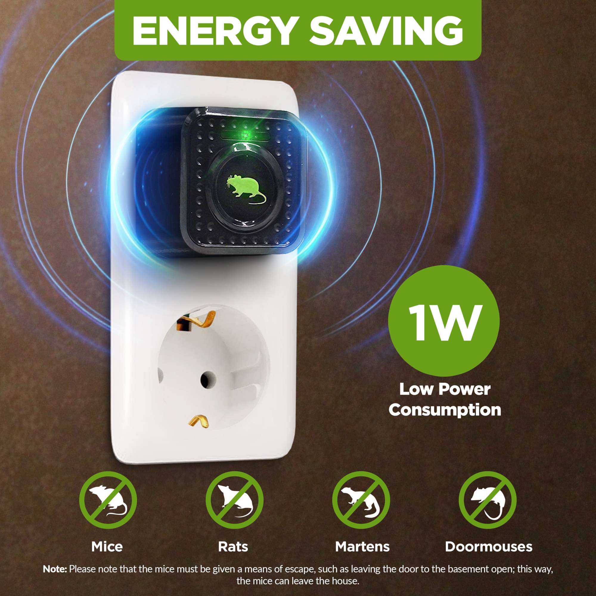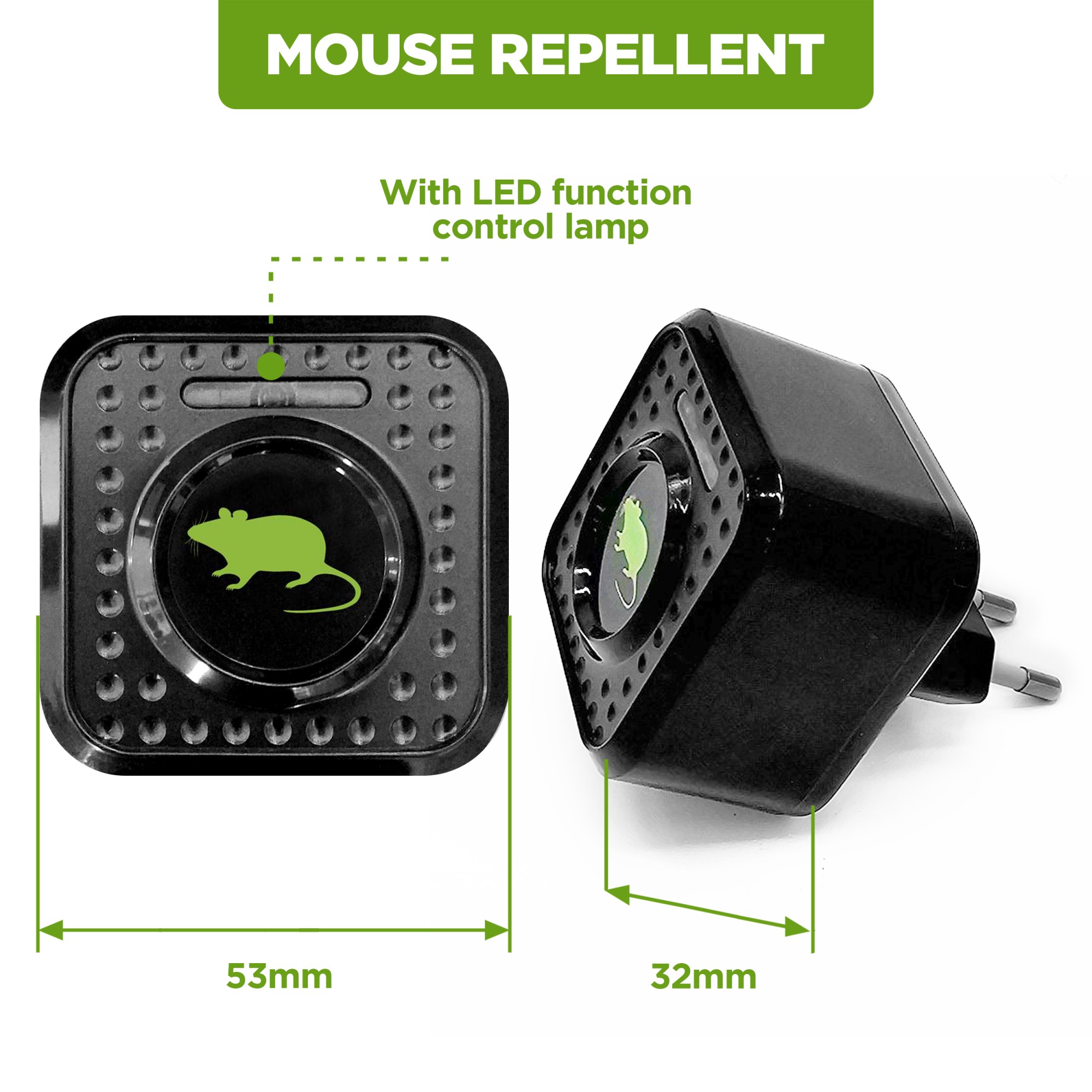 Универсален 23 kHz ултразвуков репелент за мишки, куници и плъхове. Уредът издава къси високочестотни звуци в 3-секундни интервали. M310 е идеален за превантивно отблъскване на гризачи, за защита на вашия дом, гараж, таванско помещение или всяко пространство с 230V контакт. Освен това съдържа предупредителна пулсираща LED светлина в зелено.