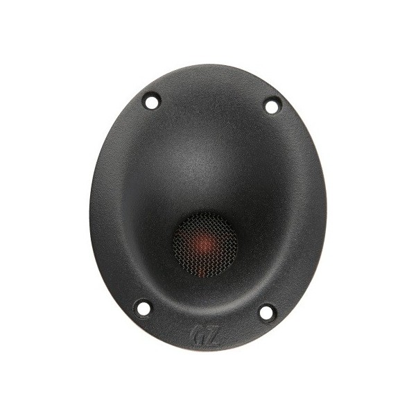 | Тип на високоговорителитеКоаксиални високоговорители: Коаксиалните високоговорители се характеризират с конструкция, наречена всичко в едно. Високочестотният и среднобасовият говорител са в един и същ кош. Предимството е по-лесен монтаж, но поради свързването или близостта на честотните диапазони в един говорител обикновено се понижава качеството на звука. Обикновено в центъра на среднобасовия говорител се намира високочестотният говорител, чиито звукова бобина работи във втората въздушна междина на общия магнитен кръг. Коаксиален говорител с три честотни диапазона се състои от среднобасов говорител, отпред на специален носач е поставен средночестотният говорител и отделен високочестотен. Компонентни високоговорители: Компонентните високоговорители се отличават с разделянето на отделни честотни диапазони: високочестотен + среднобасов + евентуално басов диапазон. Отделните говорители могат да бъдат разположени напълно отделно, което води до по-добро звуково и акустично представяне. В огромното мнозинство от случаите при компонентните високоговорители се доставя и външна кросоувърна мрежа, която разделя високите, средните/среднобасовите и при системи с три честотни диапазона и басовите честоти, както и позволява настройване на нивото в децибели на високочестотния говорител (напр. +2 dB, 0 dB, -2 dB), стръмността (напр. 6 dB/октава, 12 dB/октава) или активно/bi-amp свързване. | Високочестотен |