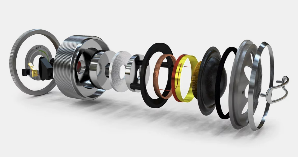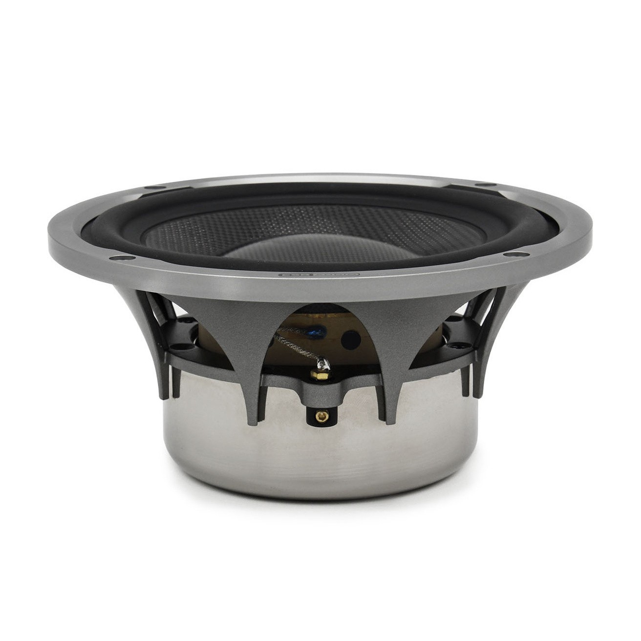 Първо ще се спрем на прекрасния кош на средночестотните и среднобасовите говорители. Той е изработен от алуминиева сплав, което го прави изключително твърд и осигурява максимална стабилност за всички подвижни части на говорителя. Кошът е също така много "отворен", за да позволи безпроблемно преминаване на налягането от задната страна на мембраната. Това осигурява равномерно налягане от двете страни на мембраната и намалява деформациите и изкривяванията. Прекрасната мембрана на говорителите е изработена от истински тъкани карбонови влакна, които са допълнително усилени с епоксидна смола. Малко има по-подходяща комбинация от лекота и твърдост за балансиране на изместванията на мембраната при ниски и много високи честоти. Специалната конструкция на окачването на мембраната от чист NBR е перфектно и плавно продължение на формата на мембраната, която следва дизайна на коша. Перфектното съединяване елиминира нежеланите резонанси и деформации на мембраната. Дори звуковите вълни вътре в мембраната се разсейват много по-добре в сравнение с традиционното окачване. Дебелината на окачването е също диференцирана, за да улесни малките движения и да подобри общия звук на говорителя. Висококачествените неодимови двойни магнити, защитени с CNC алуминиев капак, осигуряват огромна магнитна сила дори след часове работа и генерират невероятна сила за перфектно управление на бобината и огромна бързина на преходната реакция. 25 mm бобина за средния диапазон и 75 mm за ууфъра са изработени от специален суперлек материал за разширен обхват и невероятно представяне. Индукционният пръстен от 99,9% чиста мед вътре в подвижната бобина намалява нейната индуктивност с около 90% и това е причината защо средните честоти могат да работят перфектно при много високи честоти, което драстично намалява хармоничните изкривявания.