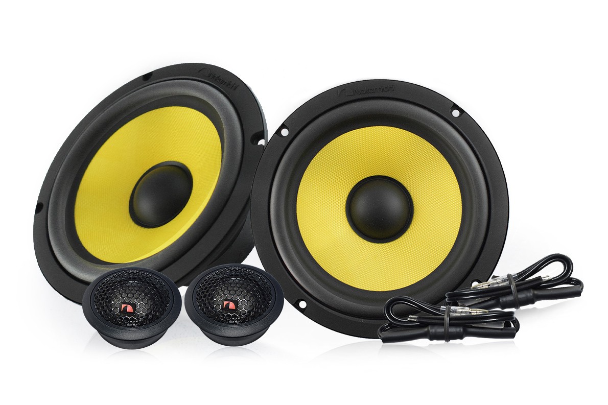 Новата моделна серия NSJ на Nakamichi представлява звуково по-напредналите коаксиални и компонентни говорители в сравнение с базовите серии NSE и NSF. Те се отличават и с използвани висококачествени материали, отлично изпълнение и по-атрактивен дизайн. Компонентните говорители Nakamichi NSJ-CS610 разполагат с композитна мембрана на мидбаса, изработена от стъклени влакна, която веднага грабва вниманието със своя ярко жълт дизайн. Този тип материал е известен с високата си якост при запазване на ниско тегло. Можете да разчитате на здрави баси и общо балансиран звук в ниските и средните честоти. Издръжливото гумено окачване осигурява гъвкавост и дълъг живот при тежки автомобилни условия. За високочестотния говорител Nakamichi залага на доказания през годините копринен купол, който предоставя естествен и детайлен звук. Купол с диаметър 25 mm е интегриран в елегантно оформен корпус с логото Nakamichi. Говорителите NSJ-CS610 са първично предназначени за заводски автомагнитоли благодарение на високата реална чувствителност, оптималната мощност и понижения импеданс до 3 Ω. Лесната инсталация се осигурява от компактни кросоувъри - на кабела за високочестотните говорители и интегрирани на коша за мидбасовите говорители.