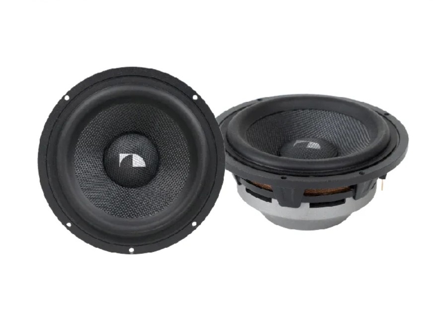 | Тип на високоговорителитеКоаксиални високоговорители: Коаксиалните високоговорители се характеризират с конструкция, наречена всичко в едно. Високочестотният и среднобасовият говорител са в един и същ кош. Предимството е по-лесен монтаж, но поради свързването или близостта на честотните диапазони в един говорител обикновено се понижава качеството на звука. Обикновено в центъра на среднобасовия говорител се намира високочестотният говорител, чиито звукова бобина работи във втората въздушна междина на общия магнитен кръг. Коаксиален говорител с три честотни диапазона се състои от среднобасов говорител, отпред на специален носач е поставен средночестотният говорител и отделен високочестотен. Компонентни високоговорители: Компонентните високоговорители се отличават с разделянето на отделни честотни диапазони: високочестотен + среднобасов + евентуално басов диапазон. Отделните говорители могат да бъдат разположени напълно отделно, което води до по-добро звуково и акустично представяне. В огромното мнозинство от случаите при компонентните високоговорители се доставя и външна кросоувърна мрежа, която разделя високите, средните/среднобасовите и при системи с три честотни диапазона и басовите честоти, както и позволява настройване на нивото в децибели на високочестотния говорител (напр. +2 dB, 0 dB, -2 dB), стръмността (напр. 6 dB/октава, 12 dB/октава) или активно/bi-amp свързване. | Средночестотни |