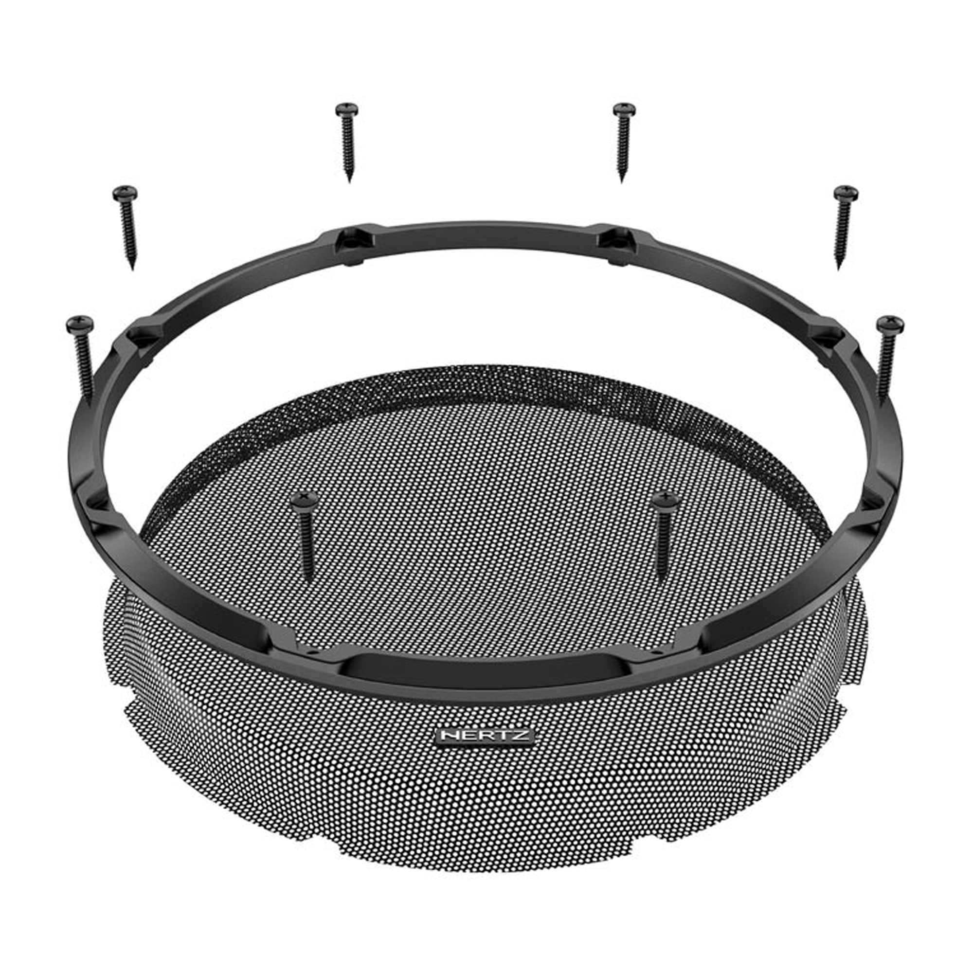 Защитна решетка за 8" субуфер Hertz CS 200, която може да се щракне върху облицовката на субуфера и предлага изцяло метална здрава конструкция с черна мрежа и елегантно лого Hertz. Решетката се задържа сама върху субуфера благодарение на изобретателна система за закрепване, за която вече е предвидено при производството на субуфера.За марката