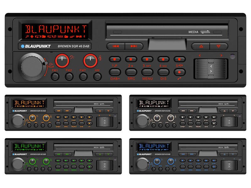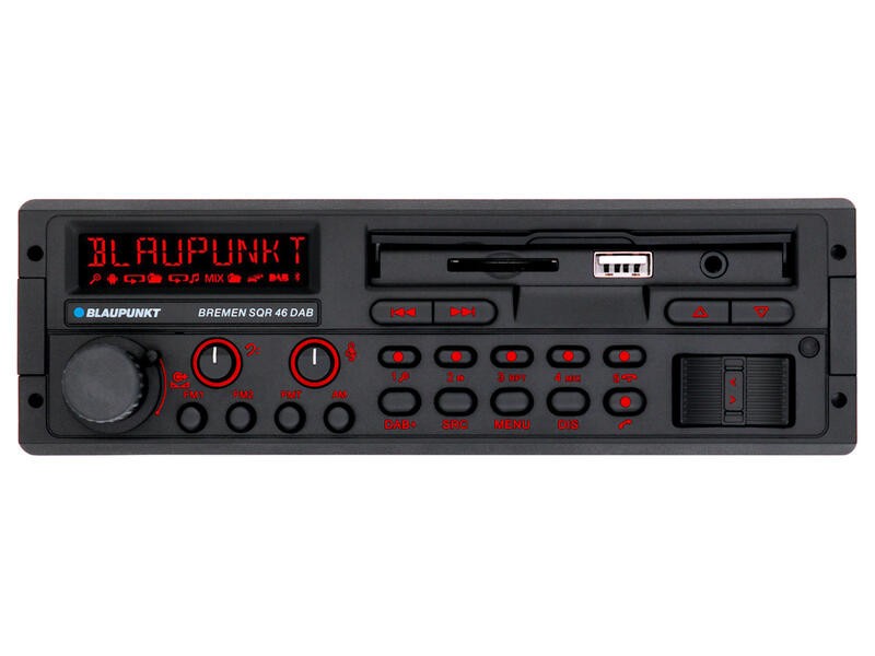 Blaupunkt Bremen SQR 46 DAB е емблематично ретро авторадио, вдъхновено от оригиналния модел от 80-те години, което съчетава вечен дизайн с най-новите аудио технологии. Легендарният опростен външен вид и управление, които направиха известни серията от исторически приемници, са запазени, но са допълнени с модерни функции като цифров DAB+ тунер за чист прием на радиостанции и FM/AM тунер с RDS функции. Новото издание предлага богати възможности за свързване за съвременните нужди – два USB порта, SDHC слот до 32 GB, AUX вход и Bluetooth модул за hands-free разговори и безжично стриймване на музика директно от мобилен телефон. Радиото е съвместимо с устройства iPhone и iPod и всички ваши предпочитания и настройки се запазват дори при отсъединяване на батерията.
