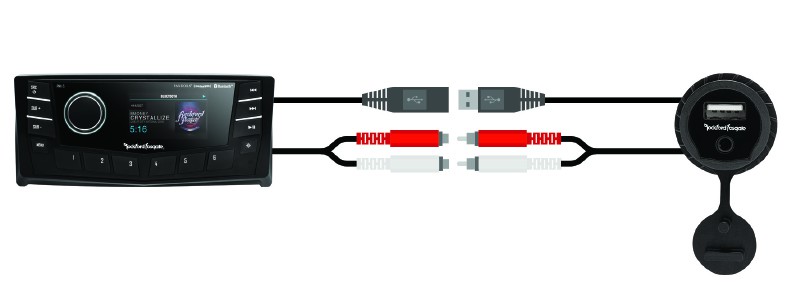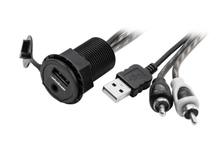 PAUX е универсален вграден входен порт, който осигурява лесен достъп до USB и външно аудио свързване. Портът има монтиран отпред USB и 3,5 мм аудио жак, който е свързан към удължителни кабели, завършващи с USB женски и стерео RCA мъжки. Този порт е проектиран да пренесе тези видове връзки от задната част на източника до лесно достъпно място на таблото или стойката. Това помага да се избегнат грозни кабели, висящи от таблото или отделението за съхранение, и осигурява по-сигурна връзка за вашите мобилни устройства.Ключови характеристики продукта Rockford Fosgate PAUX